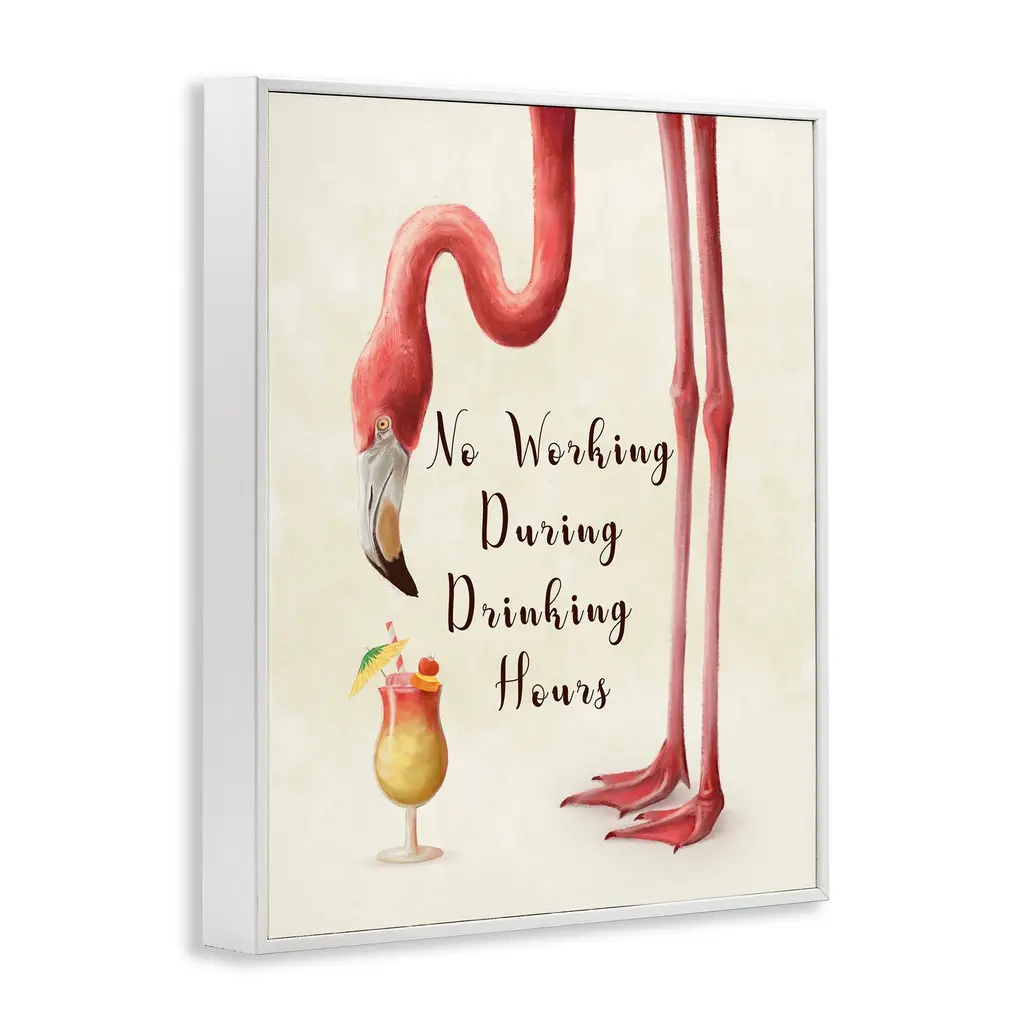 Stupell No Working During Drinking Hours Phrase Tropical Flamingo Framed Giclee Texturized Art By Ziwei Li - 11 X 14 - White