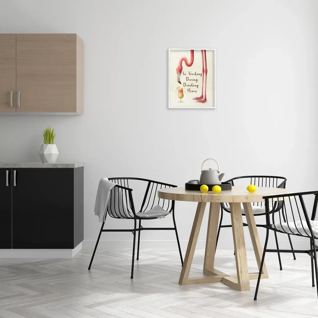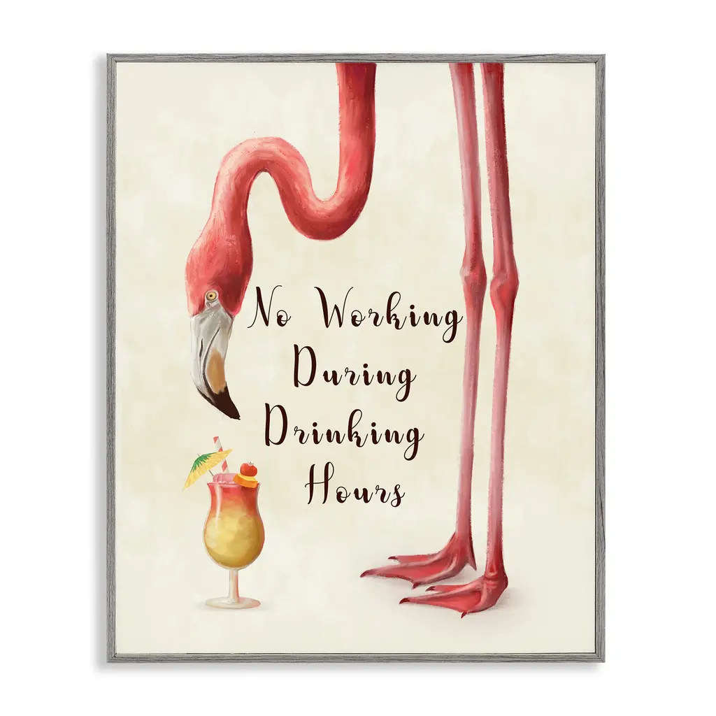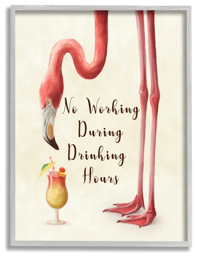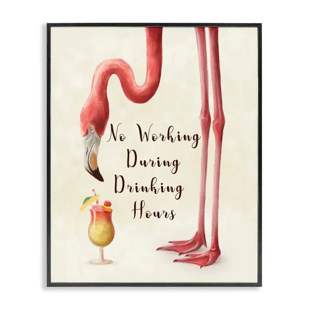 Stupell No Working During Drinking Hours Phrase Tropical Flamingo Framed Giclee Texturized Art By Ziwei Li - 16 X 20 - White