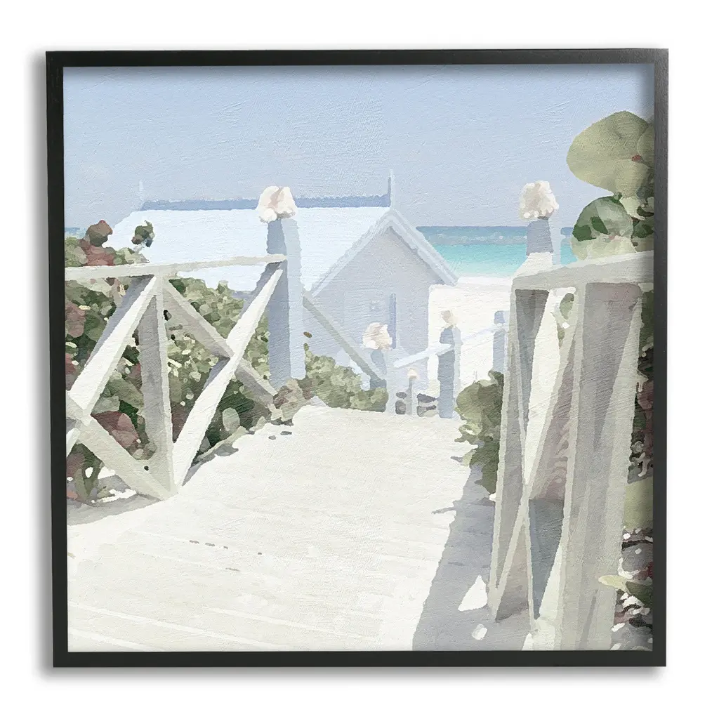 Add dimension to any room with our textured Framed Giclee Artwork. Our framed artwork is securely mounted into a 1.5-inch thick wood grain frame and ready to hang. Frames are available in three alluring styles: black, gray farmhouse and white. In addition, you should check out our oversized options if you want a statement piece. Stupell Wall Art is made in the USA.Features: Dimensions: 12 x 1.5 x 12 FramedFramed Giclee Sizes Include Standard: 12 x 1.5 x 12 Large: 17 x 1.5 x 17 Oversized: 24 x 1.5 x 24Wall Art is Ready to Hang with Hardware Free Hanging. No installation required. For Easy Set Up Lean or Layer Artwork on Shelf or Against Wall.Our giclée prints are carefully mounted on a durable MDF backing, and then perfectly finished in a 1.5 inch thick woodgrain frame. Mounted frame colors include black, gray farmhouse and white. Made In USA.Artwork Relates To: Water, Waterfront, Scenery, Beach, Coast, Sea, Shoreline, Boardwalk, PaintingDesign by Noah Bay