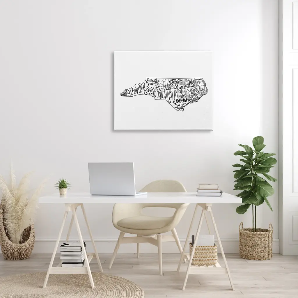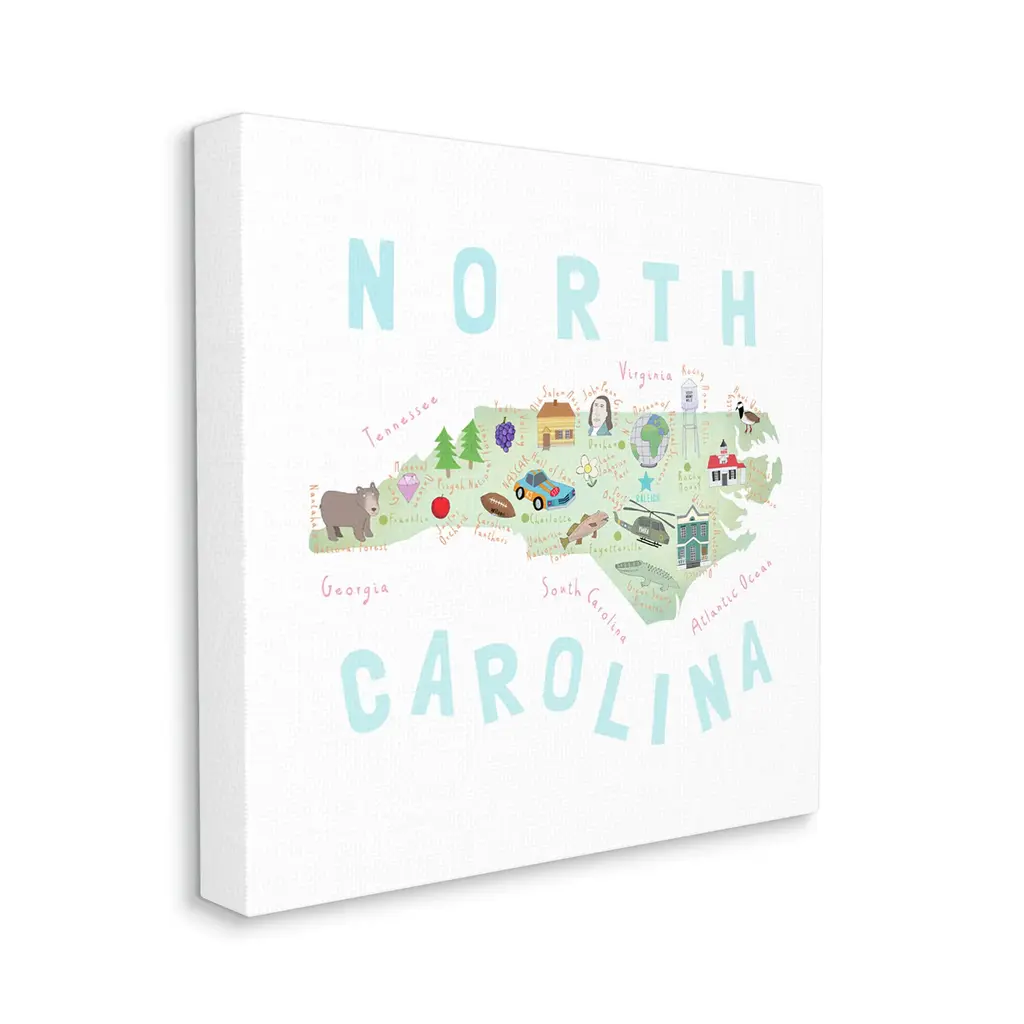 We create our stretched canvas to the highest standards. Using only the highest quality inks and canvas on Mimaki printers, we hand-cut and stretch each piece over a 1.5-inch thick wooden frame for hanging. As a result, the art comes ready to hang on the sturdy ledge with no installation required. Stupell Wall Art is made in the USA.Features: Dimensions: 17 x 1.5 x 17 InchesStretched Canvas Sizes Include Standard: 17 x 1.5 x 17 Large: 24 x 1.5 x 24 X-Large: 30 x 1.5 x 30 Oversized: 36 x 1.5 x 36Wall Art is Ready to Hang - No Installation or Hardware Needed. For Easy Set Up Lean or Layer Artwork on Shelf or Against Wall.Our stretched canvas is created with the highest standards. We use only the highest quality inks and canvas on our in house Mimaki printers, and then hand cut and stretch each piece over a 1.5 inch thick wooden frame for hanging. Made In USA.Artwork Relates To: USA, State, Landmarks, Map, Diagram, North CarolinaDesign by Carla Daly