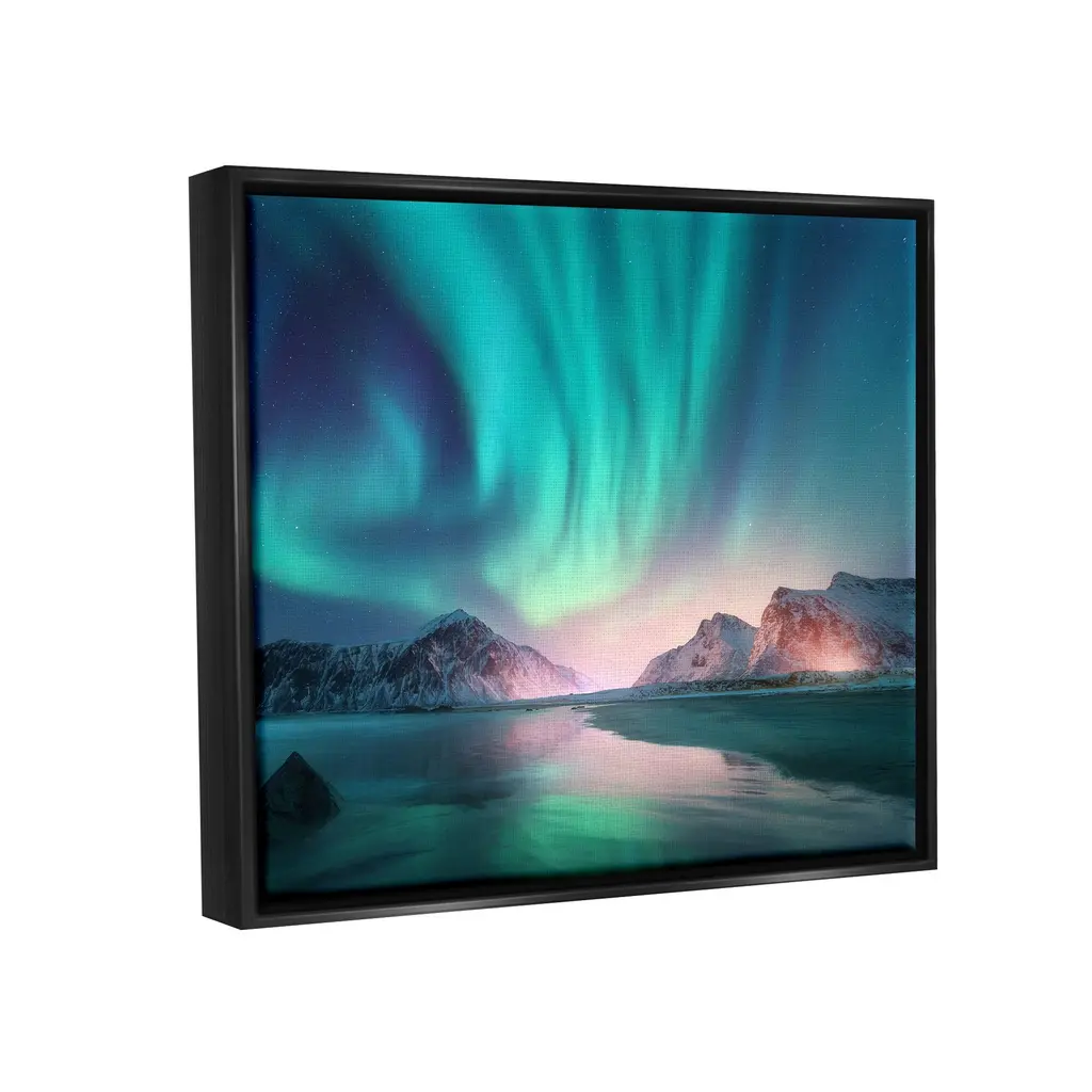 Elevate your home or office to the next level with Stupell Framed Floating Canvas Wall Art. Our premium hand-stretched canvas is mounted securely into a sturdy lightweight frame. The museum-style gap between the wrapped canvas and the box frame gives the illusion of floating artwork. Stupell Wall Art is made in the USA.Features: Dimensions: 21 x 1.7 x 17 Frame, 20 x 1.5 x 16 Canvas ArtFloating Frame Sizes Include Standard: 21 x 1.7 x 17 Oversized: 31 x 1.7 x 25Wall Art is Ready to Hang with Hardware Free Hanging. No installation required. For Easy Set Up Lean or Layer Artwork on Shelf or Against Wall.Our elevated 1.7" Thick Floating Frame is the perfect complement to our canvas style Wall Art. We use only the highest quality inks in house with industry leading printing solutions. Canvas is hand stretched over a durable wood foundation and then mounted securly into a Modern Box Frame. Made in the USA.Artwork Relates To: Nature, Night, Outdoors, Sky, Scenery, Aurora, Landscape, Glacier, Northern LightsDesign by Incado