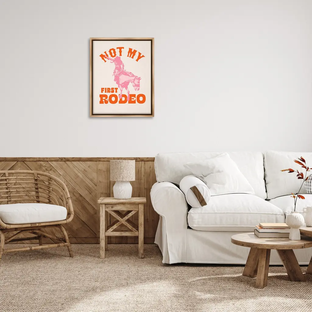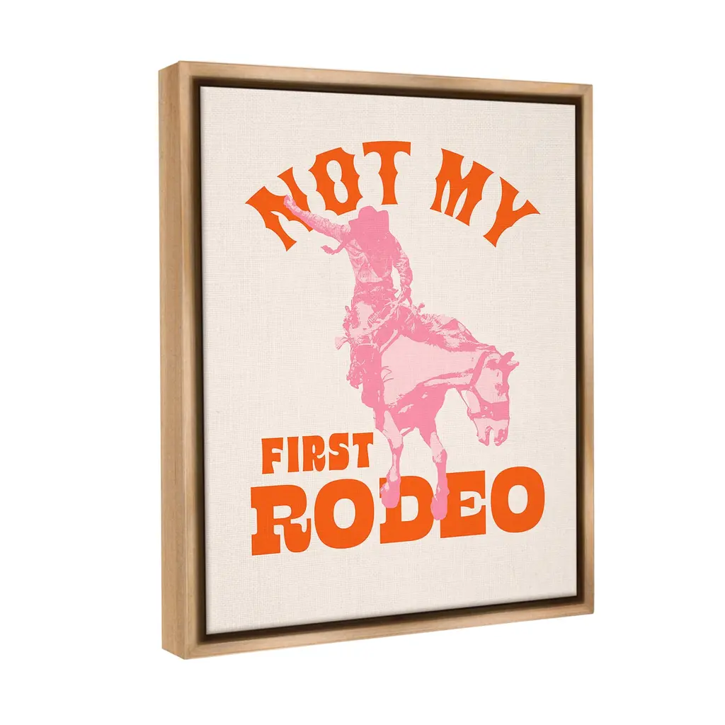 Elevate your home or office to the next level with Stupell Framed Floating Canvas Wall Art. Our premium hand-stretched canvas is mounted securely into a sturdy lightweight frame. The museum-style gap between the wrapped canvas and the box frame gives the illusion of floating artwork. Stupell Wall Art is made in the USA.Features: Dimensions: 17 x 1.7 x 21 Frame, 16 x 1.5 x 20 Canvas ArtFloating Frame Canvas Products are available in sizes 17"x21" and 25"x31". All Floating Frame Canvas Products have a 1.7" Depth.Wall Art is Ready to Hang with Hardware Free Hanging. No Installation required. For Easy Set Up Lean or Layer Artwork on Shelf or Against Wall. Artwork is Permently Fixed into the Frame.Our elevated 1.7" Thick Floating Frame is the perfect complement to our canvas style Wall Art. We use only the highest quality inks in house with industry leading printing solutions. Canvas is hand stretched over a durable wood foundation and then mounted securly into a Modern Box Frame. Made in the USA.Artwork Relates To: Animal, Horse, Mammal, Saddle, Equestrian, Person, Rodeo, Country, Southwestern, Cowboy, Cowgirl, Phrase, Humor, Not My First RodeoDesign by Victoria Barnes