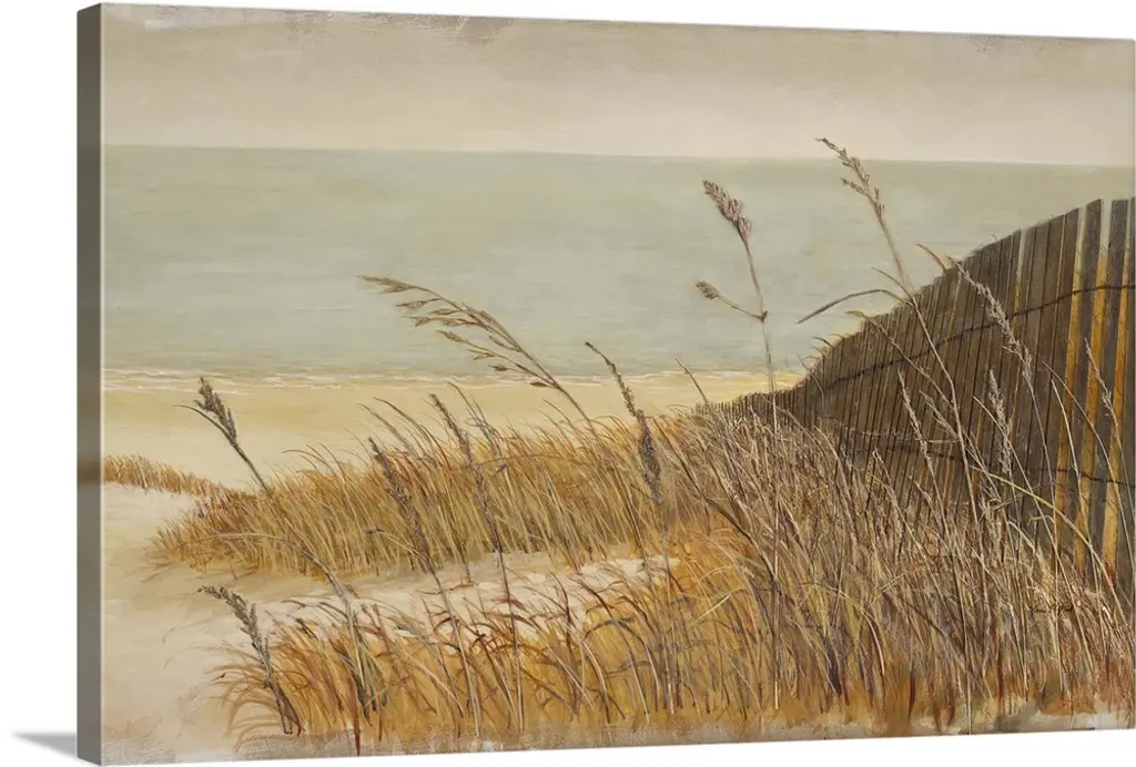 Stupell Ocean Cliff Sunset Sun Bleached Grass Seaside Photography Canvas Wall Art - Yellow - 30 X 24