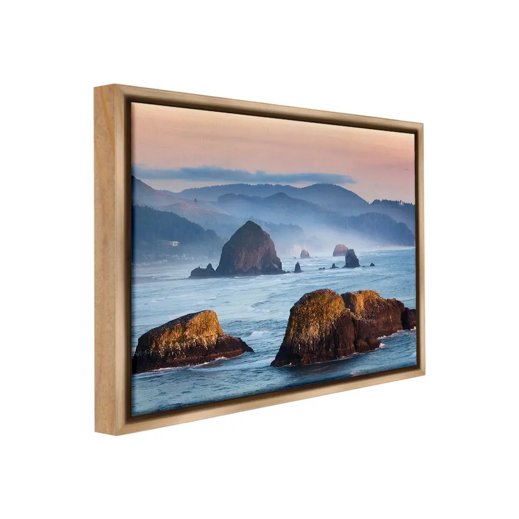 Elevate your home or office to the next level with Stupell Framed Floating Canvas Wall Art. Our premium hand-stretched canvas is mounted securely into a sturdy lightweight frame. The museum-style gap between the wrapped canvas and the box frame gives the illusion of floating artwork. Stupell Wall Art is made in the USA.Features: Dimensions: 21 x 1.7 x 17 Frame, 20 x 1.5 x 16 Canvas ArtFloating Frame Canvas Products are available in sizes 21"x17" and 31"x25". All Floating Frame Canvas Products have a 1.7" Depth.Wall Art is Ready to Hang with Hardware Free Hanging. No Installation required. For Easy Set Up Lean or Layer Artwork on Shelf or Against Wall. Artwork is Permently Fixed into the Frame.Our elevated 1.7" Thick Floating Frame is the perfect complement to our canvas style Wall Art. We use only the highest quality inks in house with industry leading printing solutions. Canvas is hand stretched over a durable wood foundation and then mounted securly into a Modern Box Frame. Made in the USA.Artwork Relates To: Scenery, Water, Sea, Shoreline, Coast, Sky, Horizon, Rock, Beach, Mountain, MarineDesign by Richard Wong