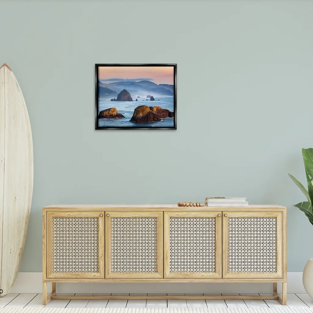 Elevate your home or office to the next level with Stupell Framed Floating Canvas Wall Art. Our premium hand-stretched canvas is mounted securely into a sturdy lightweight frame. The museum-style gap between the wrapped canvas and the box frame gives the illusion of floating artwork. Stupell Wall Art is made in the USA.Features: Dimensions: 21 x 1.7 x 17 Frame, 20 x 1.5 x 16 Canvas ArtFloating Frame Canvas Products are available in sizes 21"x17" and 31"x25". All Floating Frame Canvas Products have a 1.7" Depth.Wall Art is Ready to Hang with Hardware Free Hanging. No Installation required. For Easy Set Up Lean or Layer Artwork on Shelf or Against Wall. Artwork is Permently Fixed into the Frame.Our elevated 1.7" Thick Floating Frame is the perfect complement to our canvas style Wall Art. We use only the highest quality inks in house with industry leading printing solutions. Canvas is hand stretched over a durable wood foundation and then mounted securly into a Modern Box Frame. Made in the USA.Artwork Relates To: Scenery, Water, Sea, Shoreline, Coast, Sky, Horizon, Rock, Beach, Mountain, MarineDesign by Richard Wong