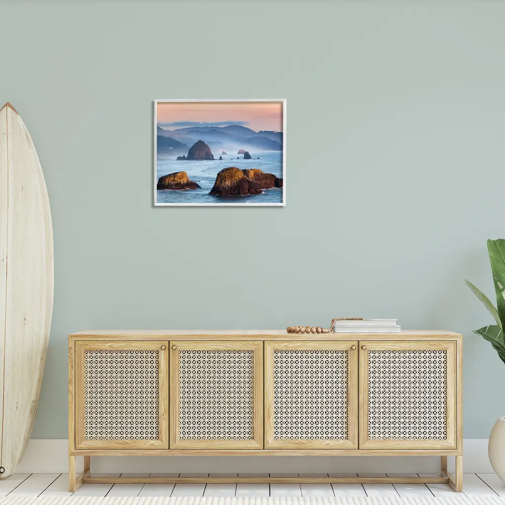 Add dimension to any room with our textured Framed Giclee Artwork. Our framed artwork is securely mounted into a 1.5-inch thick wood grain frame and ready to hang. Frames are available in three alluring styles: black, gray farmhouse and white. In addition, you should check out our oversized options if you want a statement piece. Stupell Wall Art is made in the USA.Features: Dimensions: 14 x 1.5 x 11 FramedFramed Giclee Products are available in the sizes 14"x11", 20"x16" or 30"x24". All Framed Giclee Products have a 1.5" Depth. Wall Art is Ready to Hang with Hardware Free Hanging. No installation required. For Easy Set Up Lean or Layer Artwork on Shelf or Against Wall.Our giclée prints are carefully mounted on a durable MDF backing, and then perfectly finished in a 1.5 inch thick woodgrain frame. Mounted frame colors include black, gray farmhouse and white. Made In USA.Artwork Relates To: Scenery, Water, Sea, Shoreline, Coast, Sky, Horizon, Rock, Beach, Mountain, MarineDesign by Richard Wong