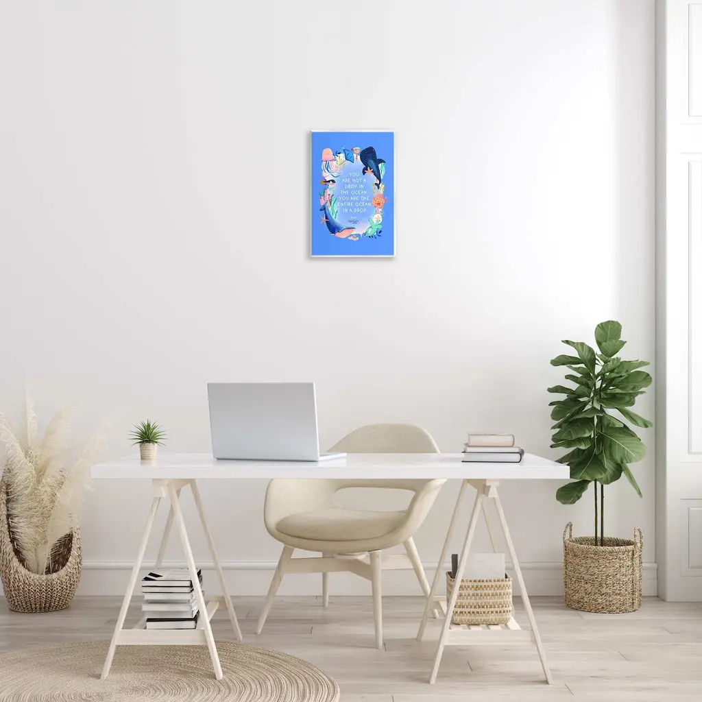 Our wall plaques start as high-quality lithograph prints mounted on durable 0.5-inch thick MDF wood. Each piece is hand finished and comes with a fresh layer of white foil on the sides to give it a crisp, clean look. Plaques arrive ready to hang without installation and come with removable plastic corners to keep them from damage in transit. Stupell Wall Art is made in the USA.Features: Dimensions: 10 x 0.5 x 15 InchesWall Plaque Product Sizes Include 10"x15" and 13"x19". All wall plaque products have a 0.5" Depth. Wall Art is Ready to Hang with Hardware Free Hanging. No installation required. For Easy Set Up Lean or Layer Artwork on Shelf or Against Wall.All of our wall plaques start off as high quality lithograph prints that are then mounted on durable 0.5 inch thick MDF wood. Each piece is hand finished and comes with a fresh layer of foil on the sides to give it a crisp clean look. Made In USA.Artwork Relates To: Animal, Fish, Sea Life, Shark, Whale, Dolphin, Nautical, Beach, Maritime, Fish, You are Not a Drop in the Ocean You are the Entire Ocean in a DropDesign by Glad You're Here Co.