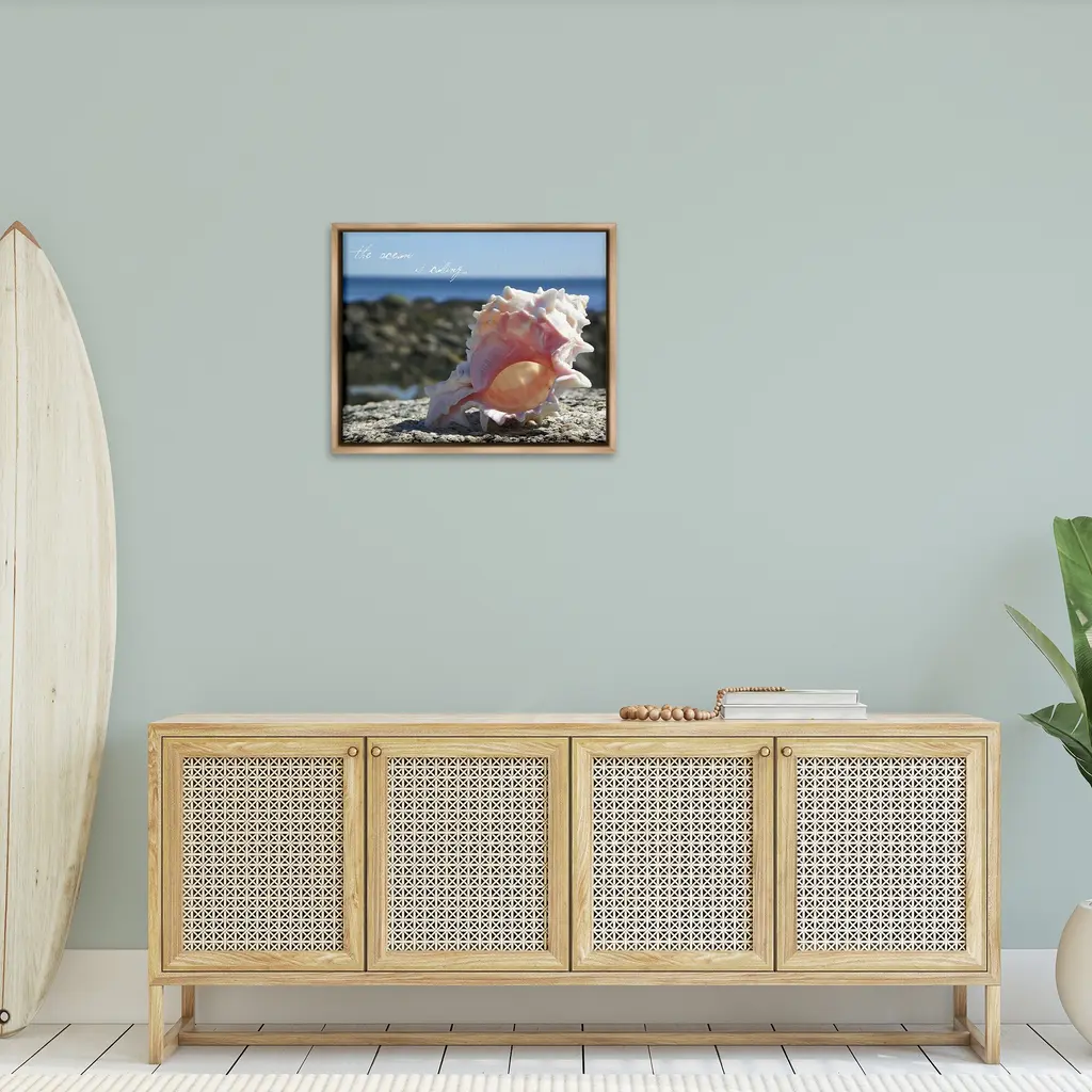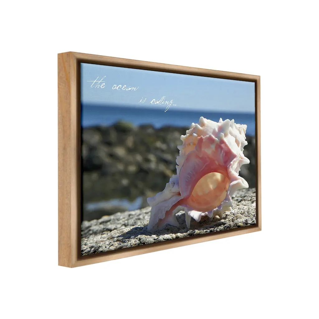 Elevate your home or office to the next level with Stupell Framed Floating Canvas Wall Art. Our premium hand-stretched canvas is mounted securely into a sturdy lightweight frame. The museum-style gap between the wrapped canvas and the box frame gives the illusion of floating artwork. Stupell Wall Art is made in the USA.Features: Dimensions: 21 x 1.7 x 17 Frame, 20 x 1.5 x 16 Canvas ArtFloating Frame Canvas Products are available in sizes 21"x17" and 31"x25". All Floating Frame Canvas Products have a 1.7" Depth.Wall Art is Ready to Hang with Hardware Free Hanging. No Installation required. For Easy Set Up Lean or Layer Artwork on Shelf or Against Wall. Artwork is Permently Fixed into the Frame.Our elevated 1.7" Thick Floating Frame is the perfect complement to our canvas style Wall Art. We use only the highest quality inks in house with industry leading printing solutions. Canvas is hand stretched over a durable wood foundation and then mounted securly into a Modern Box Frame. Made in the USA.Artwork Relates To: Animal, Invertebrate, Sea Life, Seashell, Conch, Beach, Shore, Coast, The Ocean is Calling, ConchDesign by GraffiTee Studios