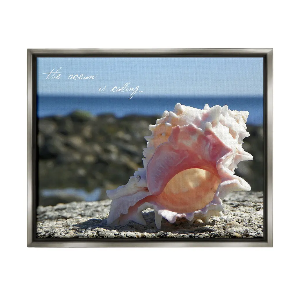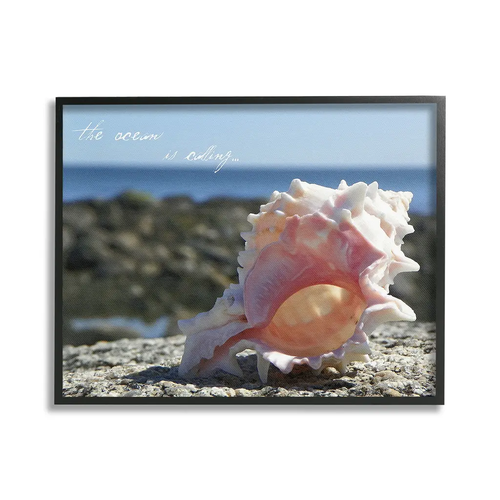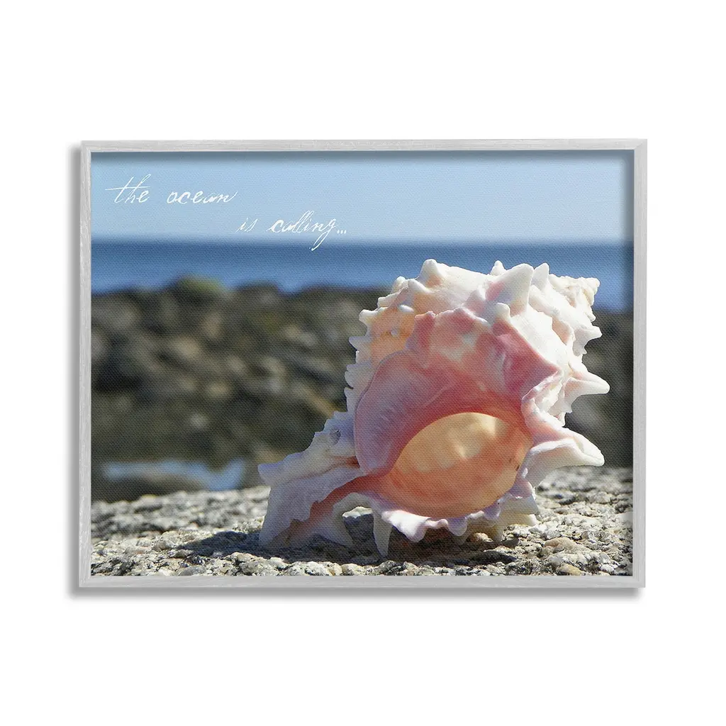 Add dimension to any room with our textured Framed Giclee Artwork. Our framed artwork is securely mounted into a 1.5-inch thick wood grain frame and ready to hang. Frames are available in three alluring styles: black, gray farmhouse and white. In addition, you should check out our oversized options if you want a statement piece. Stupell Wall Art is made in the USA.Features: Dimensions: 14 x 1.5 x 11 FramedFramed Giclee Products are available in the sizes 14"x11", 20"x16" or 30"x24". All Framed Giclee Products have a 1.5" Depth. Wall Art is Ready to Hang with Hardware Free Hanging. No installation required. For Easy Set Up Lean or Layer Artwork on Shelf or Against Wall.Our giclée prints are carefully mounted on a durable MDF backing, and then perfectly finished in a 1.5 inch thick woodgrain frame. Mounted frame colors include black, gray farmhouse and white. Made In USA.Artwork Relates To: Animal, Invertebrate, Sea Life, Seashell, Conch, Beach, Shore, Coast, The Ocean is Calling, ConchDesign by GraffiTee Studios