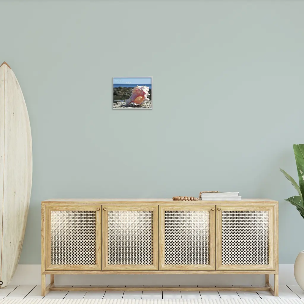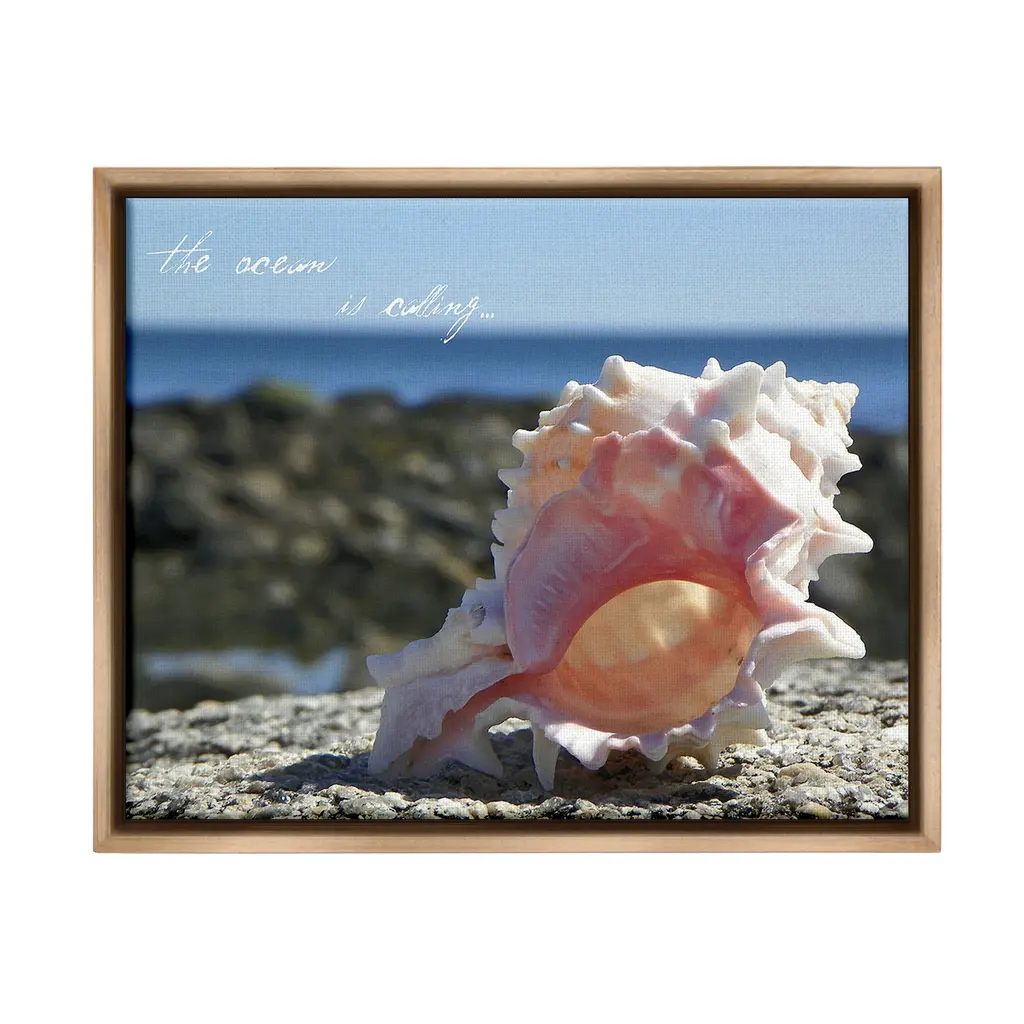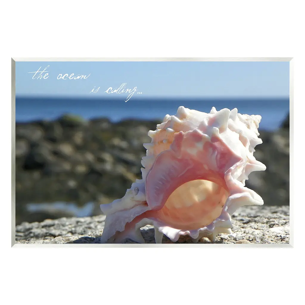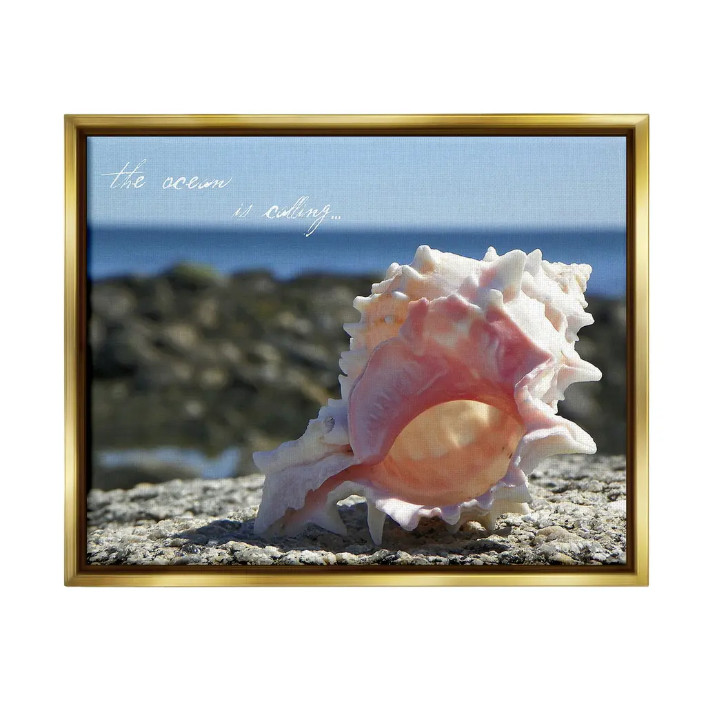 Add dimension to any room with our textured Framed Giclee Artwork. Our framed artwork is securely mounted into a 1.5-inch thick wood grain frame and ready to hang. Frames are available in three alluring styles: black, gray farmhouse and white. In addition, you should check out our oversized options if you want a statement piece. Stupell Wall Art is made in the USA.Features: Dimensions: 14 x 1.5 x 11 FramedFramed Giclee Products are available in the sizes 14"x11", 20"x16" or 30"x24". All Framed Giclee Products have a 1.5" Depth. Wall Art is Ready to Hang with Hardware Free Hanging. No installation required. For Easy Set Up Lean or Layer Artwork on Shelf or Against Wall.Our giclée prints are carefully mounted on a durable MDF backing, and then perfectly finished in a 1.5 inch thick woodgrain frame. Mounted frame colors include black, gray farmhouse and white. Made In USA.Artwork Relates To: Animal, Invertebrate, Sea Life, Seashell, Conch, Beach, Shore, Coast, The Ocean is Calling, ConchDesign by GraffiTee Studios