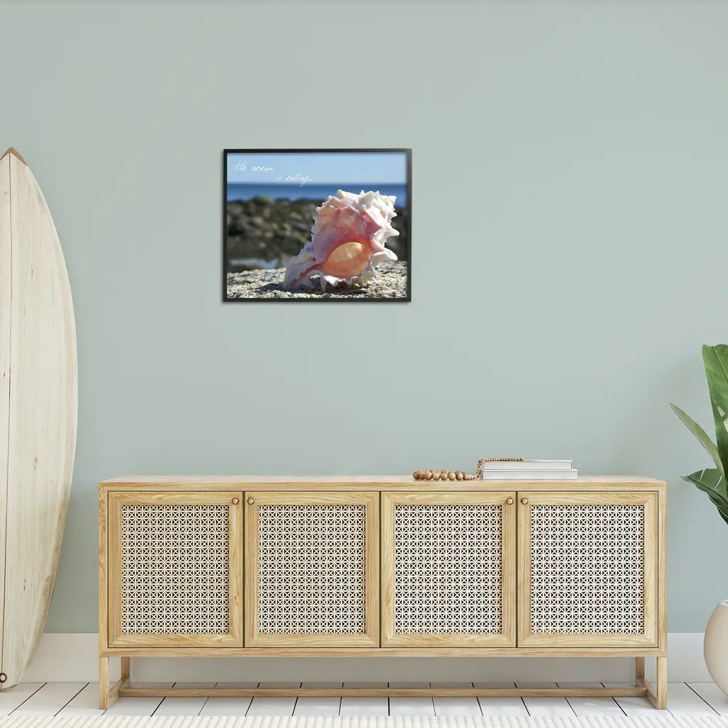 Add dimension to any room with our textured Framed Giclee Artwork. Our framed artwork is securely mounted into a 1.5-inch thick wood grain frame and ready to hang. Frames are available in three alluring styles: black, gray farmhouse and white. In addition, you should check out our oversized options if you want a statement piece. Stupell Wall Art is made in the USA.Features: Dimensions: 14 x 1.5 x 11 FramedFramed Giclee Products are available in the sizes 14"x11", 20"x16" or 30"x24". All Framed Giclee Products have a 1.5" Depth. Wall Art is Ready to Hang with Hardware Free Hanging. No installation required. For Easy Set Up Lean or Layer Artwork on Shelf or Against Wall.Our giclée prints are carefully mounted on a durable MDF backing, and then perfectly finished in a 1.5 inch thick woodgrain frame. Mounted frame colors include black, gray farmhouse and white. Made In USA.Artwork Relates To: Animal, Invertebrate, Sea Life, Seashell, Conch, Beach, Shore, Coast, The Ocean is Calling, ConchDesign by GraffiTee Studios