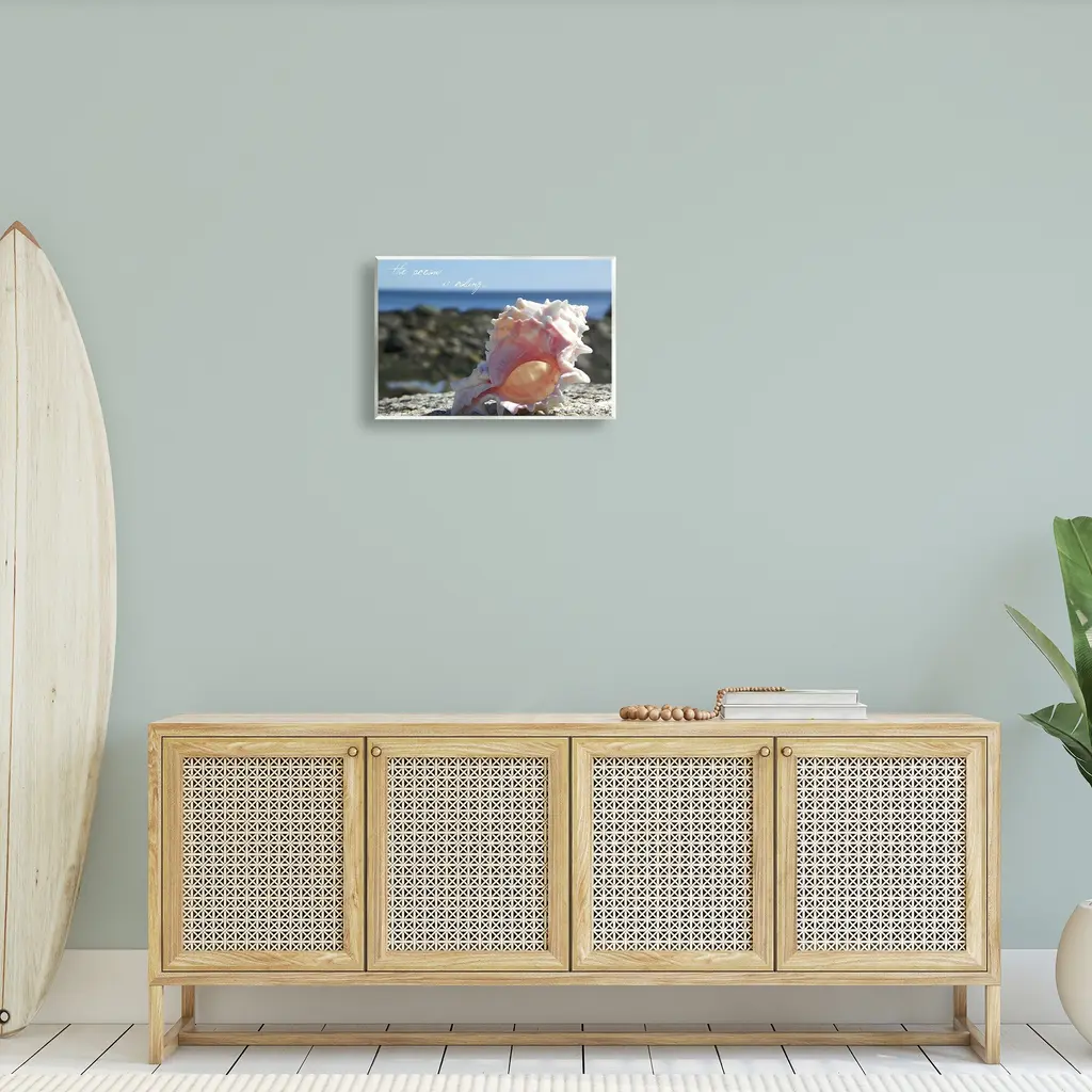 Our wall plaques start as high-quality lithograph prints mounted on durable 0.5-inch thick MDF wood. Each piece is hand finished and comes with a fresh layer of white foil on the sides to give it a crisp, clean look. Plaques arrive ready to hang without installation and come with removable plastic corners to keep them from damage in transit. Stupell Wall Art is made in the USA.Features: Dimensions: 15 x 0.5 x 10 InchesWall Plaque Product Sizes Include 15"x10" and 19"x13". All wall plaque products have a 0.5" Depth. Wall Art is Ready to Hang with Hardware Free Hanging. No installation required. For Easy Set Up Lean or Layer Artwork on Shelf or Against Wall.All of our wall plaques start off as high quality lithograph prints that are then mounted on durable 0.5 inch thick MDF wood. Each piece is hand finished and comes with a fresh layer of foil on the sides to give it a crisp clean look. Made In USA.Artwork Relates To: Animal, Invertebrate, Sea Life, Seashell, Conch, Beach, Shore, Coast, The Ocean is Calling, ConchDesign by GraffiTee Studios