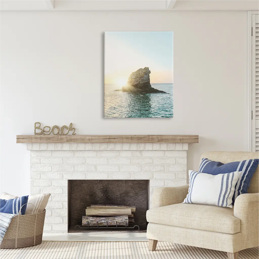 We create our stretched canvas to the highest standards. Using only the highest quality inks and canvas on Mimaki printers, we hand-cut and stretch each piece over a 1.5-inch thick wooden frame for hanging. As a result, the art comes ready to hang on the sturdy ledge with no installation required. Stupell Wall Art is made in the USA.Features: Dimensions: 16 x 1.5 x 20 InchesStretched Canvas Sizes Include Standard: 16 x 1.5 x 20 Large: 20 x 1.5 x 30 X-Large: 30 x 1.5 x 40 Oversized: 36 x 1.5 x 48Wall Art is Ready to Hang with Hardware Free Hanging. No installation required. For Easy Set Up Lean or Layer Artwork on Shelf or Against Wall.Our stretched canvas is created with the highest standards. We use only the highest quality inks and canvas on our in house Mimaki printers, and then hand cut and stretch each piece over a 1.5 inch thick wooden frame for hanging. Made In USA.Artwork Relates To: Horizon, Sky, Sea, Water, Sea Waves, Scenery, Beach, Coast, Ocean, Sunset, Rock, CliffDesign by Sisi and Seb