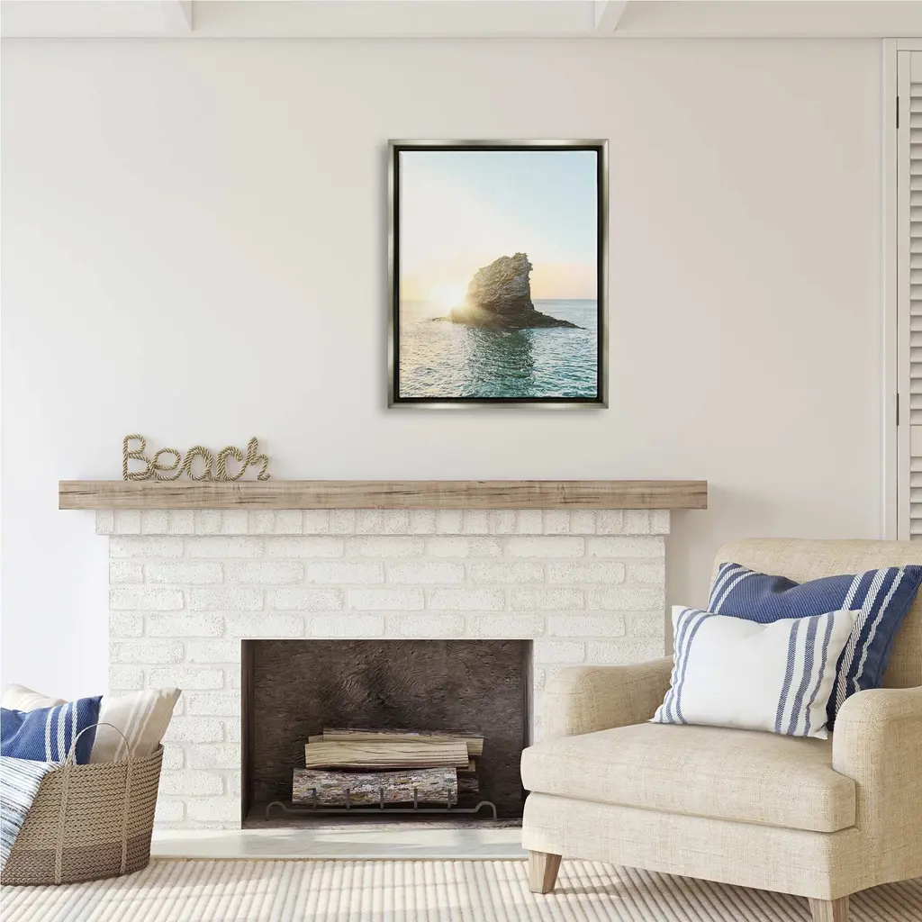 Elevate your home or office to the next level with Stupell Framed Floating Canvas Wall Art. Our premium hand-stretched canvas is mounted securely into a sturdy lightweight frame. The museum-style gap between the wrapped canvas and the box frame gives the illusion of floating artwork. Stupell Wall Art is made in the USA.Features: Dimensions: 17 x 1.7 x 21 Frame, 16 x 1.5 x 20 Canvas ArtFloating Frame Sizes Include Standard: 17 x 1.7 x 21 Oversized: 25 x 1.7 x 31Wall Art is Ready to Hang with Hardware Free Hanging. No installation required. For Easy Set Up Lean or Layer Artwork on Shelf or Against Wall.Our elevated 1.7" Thick Floating Frame is the perfect complement to our canvas style Wall Art. We use only the highest quality inks in house with industry leading printing solutions. Canvas is hand stretched over a durable wood foundation and then mounted securly into a Modern Box Frame. Made in the USA.Artwork Relates To: Horizon, Sky, Sea, Water, Sea Waves, Scenery, Beach, Coast, Ocean, Sunset, Rock, CliffDesign by Sisi and Seb