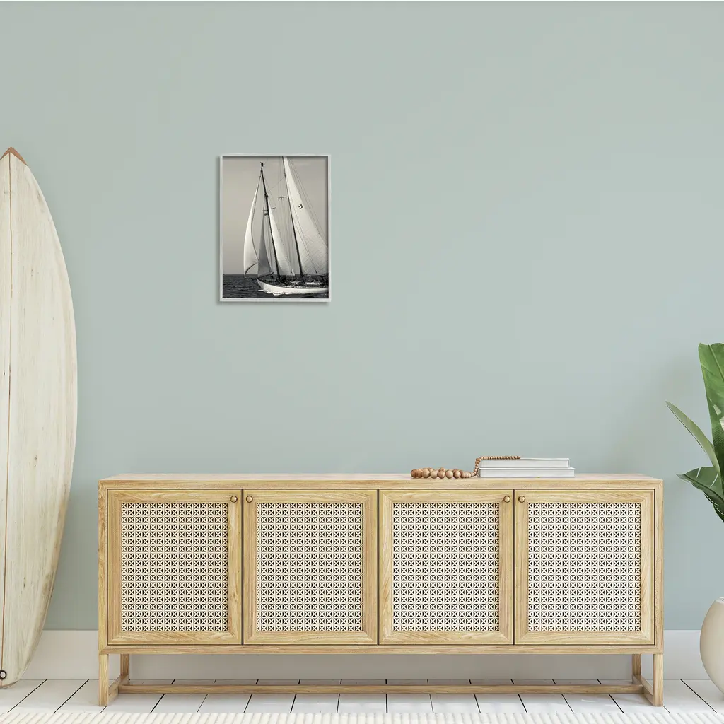 Stupell Ocean Ship Full Sail Modern Nautical Boat Photography Framed Wall Art - 16 X 20 - Grey