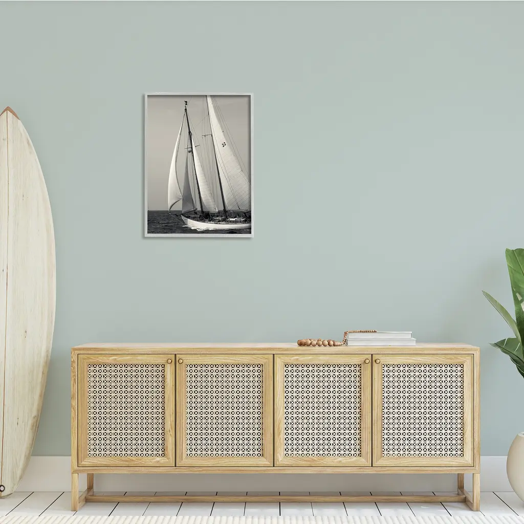 Stupell Ocean Ship Full Sail Modern Nautical Boat Photography Framed Wall Art - 24 X 30 - Grey