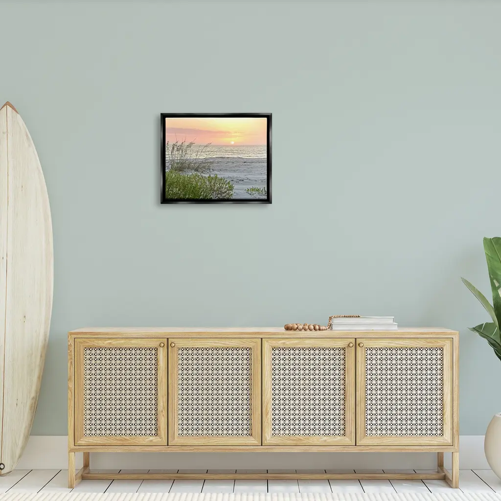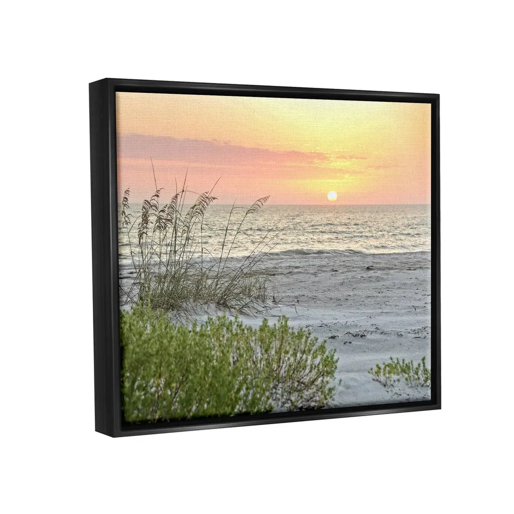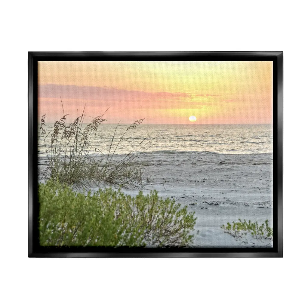 Stupell Ocean Shore Reeds Sunset Horizon Floating Framed Canvas Wall Art, Design By Mary Lou Photography - 21 X 17 - Black