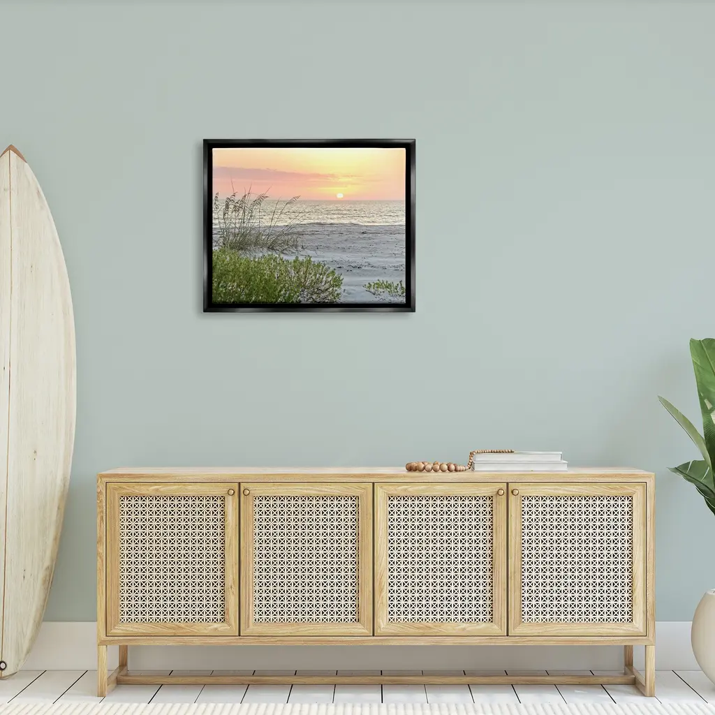 Elevate your home or office to the next level with Stupell Framed Floating Canvas Wall Art. Our premium hand stretched canvas is mounted securly into a sturdy lightweight frame. The museum style gap between wrapped canvas and box frame gives the illusion of floating artwork.Features:Floating Frame Sizes IncludeStandard: 21 x 1.7 x 17Oversized: 31 x 1.7 x 25Wall Art is Ready to Hang - No Installation or Hardware Needed. For Easy Set Up Lean or Layer Artwork on Shelf or Against Wall.Artwork Relates To: Grass, Plant, Nature, Outdoors, Sky, Sunset, Dawn, Dusk, Red Sky, Sunrise, Land, Water, Sun, Scenery, Reed, Beach, Shore, Coast, PhotographyOur elevated 1.7" Thick Floating Frame is the perfect complement to our canvas style Wall Art. We use only the highest quality inks in house with industry leading printing solutions. Canvas is hand stretched over a durable wood foundation and then mounted securly into a Modern Box Frame. Made in the USA.Design by Mary Lou Photography