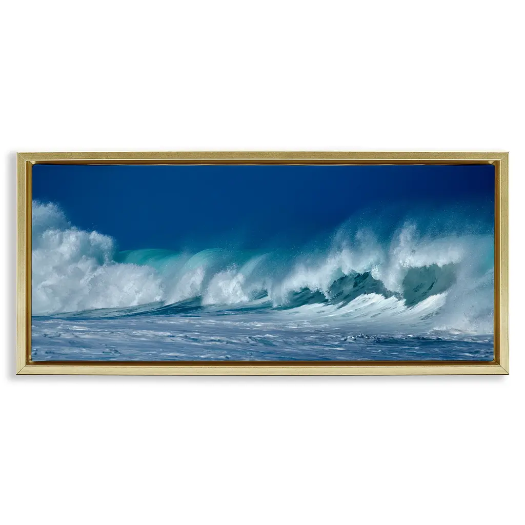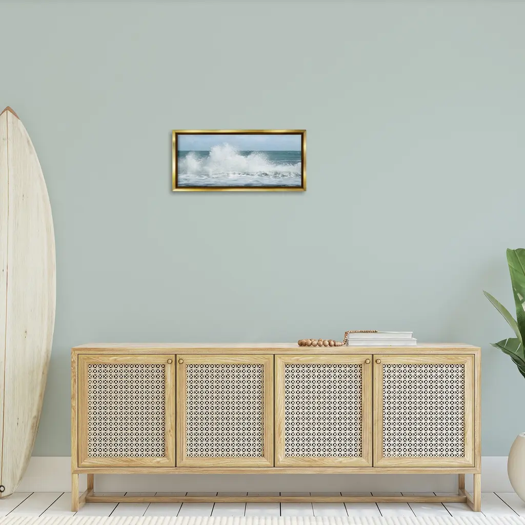 Elevate your home or office to the next level with Stupell Framed Floating Canvas Wall Art. Our premium hand-stretched canvas is mounted securely into a sturdy lightweight frame. The museum-style gap between the wrapped canvas and the box frame gives the illusion of floating artwork. Stupell Wall Art is made in the USA.Features: Dimensions: 25 x 1.7 x 11 Frame, 24 x 1.5 x 10 Canvas ArtFloating Frame Canvas Products are available in sizes 25"x11" and 31"x14". All Floating Frame Canvas Products have a 1.7" Depth.Wall Art is Ready to Hang with Hardware Free Hanging. No Installation required. For Easy Set Up Lean or Layer Artwork on Shelf or Against Wall. Artwork is Permently Fixed into the Frame.Our elevated 1.7" Thick Floating Frame is the perfect complement to our canvas style Wall Art. We use only the highest quality inks in house with industry leading printing solutions. Canvas is hand stretched over a durable wood foundation and then mounted securly into a Modern Box Frame. Made in the USA.Artwork Relates To: Nature, Sea, Water, Sea Waves, Scenery, Landscape, PanoramicDesign by Lori Deiter
