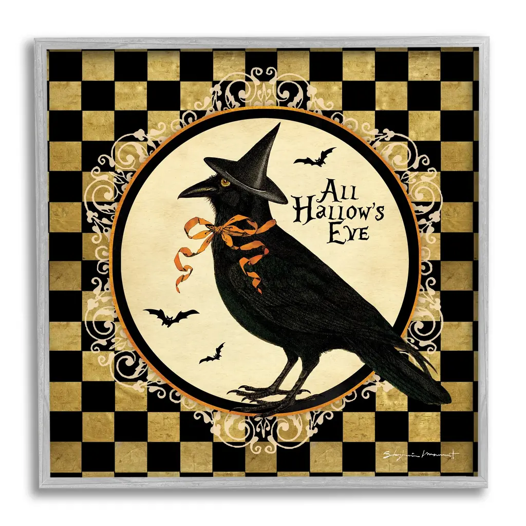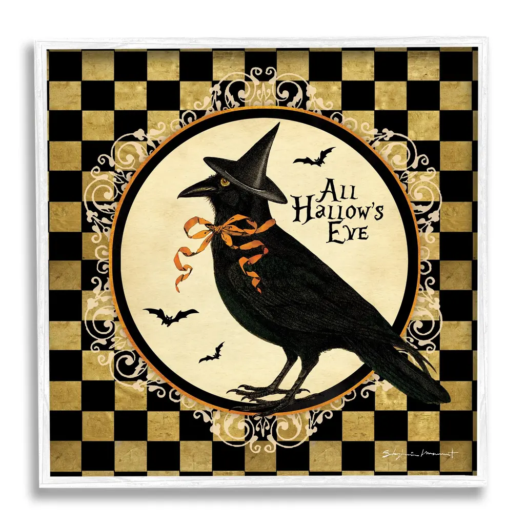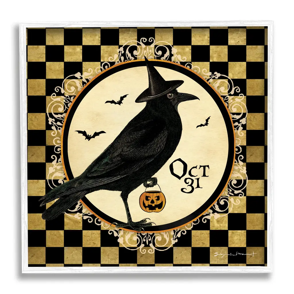 Add dimension to any room with our textured Framed Giclee Artwork. Our framed artwork is securely mounted into a 1.5-inch thick wood grain frame and ready to hang. Frames are available in three alluring styles: black, gray farmhouse and white. In addition, you should check out our oversized options if you want a statement piece. Stupell Wall Art is made in the USA.Features: Dimensions: 12 x 1.5 x 12 FramedFramed Giclee Sizes Include Standard: 12 x 1.5 x 12 Large: 17 x 1.5 x 17 Oversized: 24 x 1.5 x 24Wall Art is Ready to Hang - No Installation or Hardware Needed. For Easy Set Up Lean or Layer Artwork on Shelf or Against Wall.Our giclée prints are carefully mounted on a durable MDF backing, and then perfectly finished in a 1.5 inch thick woodgrain frame. Mounted frame colors include black, gray farmhouse and white. Made In USA.Artwork Relates To: Witch, Halloween, Festive, Seasonal, Spooky, Vintage, Crow, Raven, Checkered, Pattern, Oct 31Design by Stephanie Workman Marrott