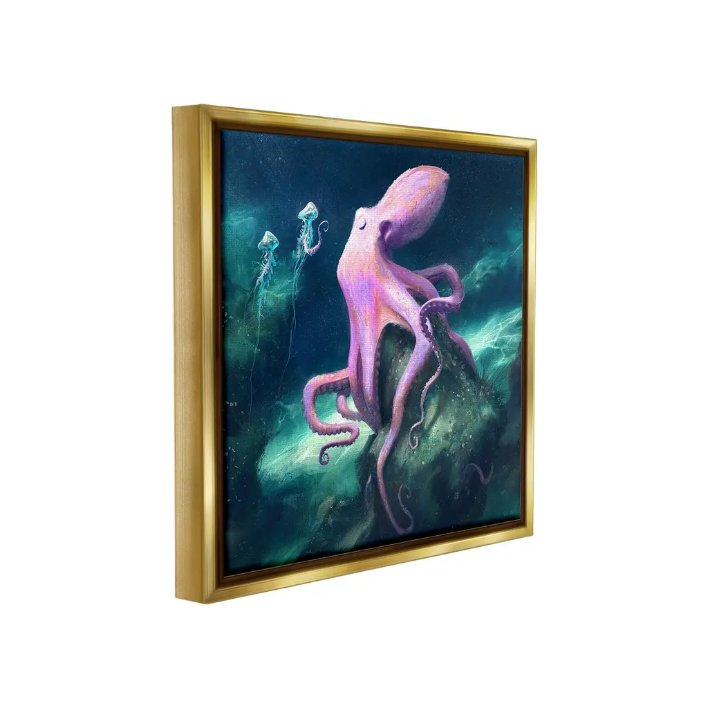 Elevate your home or office to the next level with Stupell Framed Floating Canvas Wall Art. Our premium hand-stretched canvas is mounted securely into a sturdy lightweight frame. The museum-style gap between the wrapped canvas and the box frame gives the illusion of floating artwork. Stupell Wall Art is made in the USA.Features: Dimensions: 18 x 1.7 x 18 Frame, 17 x 1.5 x 17 Canvas ArtFloating Frame Canvas Products are available in sizes 18"x18" and 25"x25". All Floating Frame Canvas Products have a 1.7" Depth.Wall Art is Ready to Hang with Hardware Free Hanging. No Installation required. For Easy Set Up Lean or Layer Artwork on Shelf or Against Wall. Artwork is Permently Fixed into the Frame.Our elevated 1.7" Thick Floating Frame is the perfect complement to our canvas style Wall Art. We use only the highest quality inks in house with industry leading printing solutions. Canvas is hand stretched over a durable wood foundation and then mounted securly into a Modern Box Frame. Made in the USA.Artwork Relates To: Animal, Sea Life, Invertebrate, Octopus, Marine, Ocean, Nautical, BeachDesign by Vlad Mel