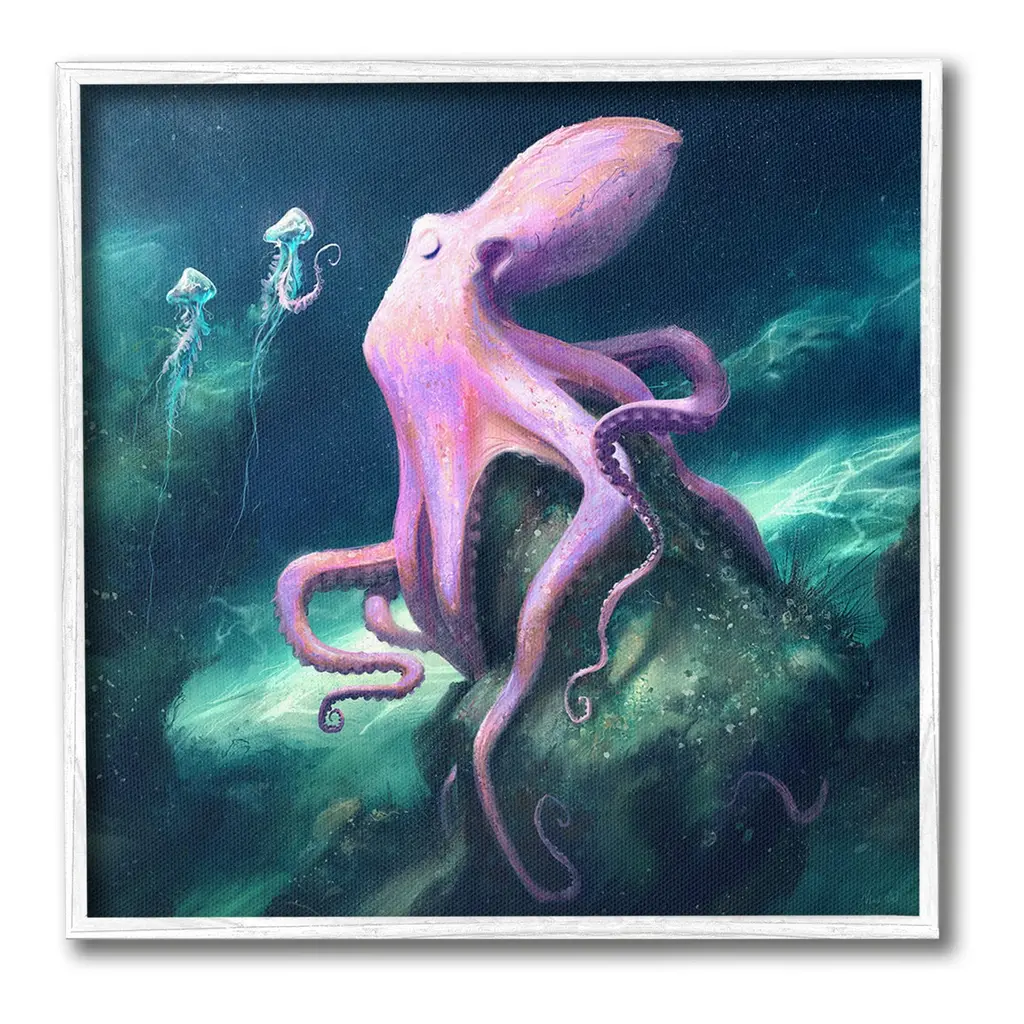 Add dimension to any room with our textured Framed Giclee Artwork. Our framed artwork is securely mounted into a 1.5-inch thick wood grain frame and ready to hang. Frames are available in three alluring styles: black, gray farmhouse and white. In addition, you should check out our oversized options if you want a statement piece. Stupell Wall Art is made in the USA.Features: Dimensions: 12 x 1.5 x 12 FramedFramed Giclee Product Sizes Include 12"x12", 17"x17", and 24"x24". Framed Giclee Products have a 1.5" Depth. Wall Art is Ready to Hang with Hardware Free Hanging. No installation required. For Easy Set Up Lean or Layer Artwork on Shelf or Against Wall.Our giclée prints are carefully mounted on a durable MDF backing, and then perfectly finished in a 1.5 inch thick woodgrain frame. Mounted frame colors include black, gray farmhouse and white. Made In USA.Artwork Relates To: Animal, Sea Life, Invertebrate, Octopus, Marine, Ocean, Nautical, BeachDesign by Vlad Mel