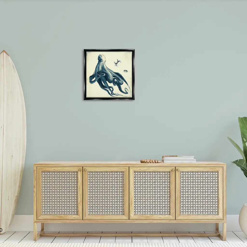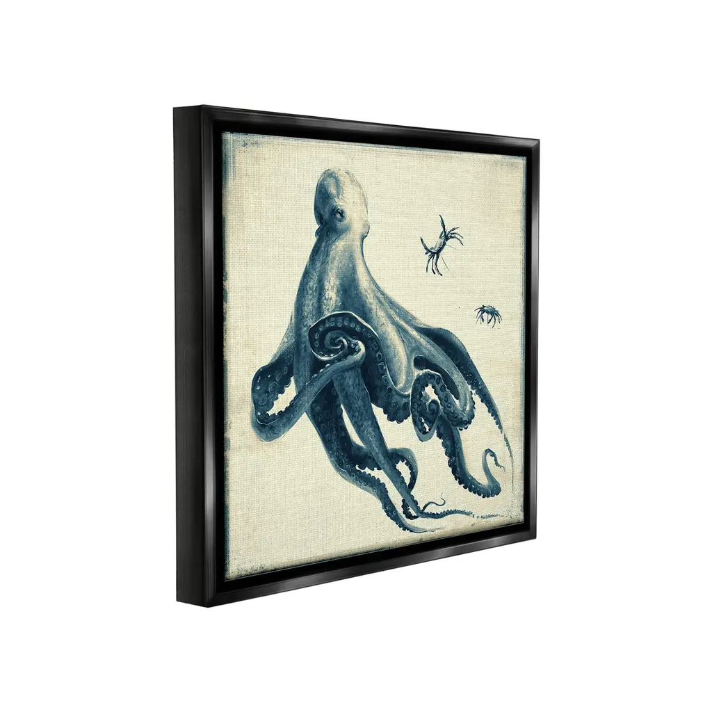 Elevate your home or office to the next level with Stupell Framed Floating Canvas Wall Art. Our premium hand-stretched canvas is mounted securely into a sturdy lightweight frame. The museum-style gap between the wrapped canvas and the box frame gives the illusion of floating artwork. Stupell Wall Art is made in the USA.Features: Dimensions: 18 x 1.7 x 18 Frame, 17 x 1.5 x 17 Canvas ArtFloating Frame Canvas Products are available in sizes 18"x18" and 25"x25". All Floating Frame Canvas Products have a 1.7" Depth.Wall Art is Ready to Hang with Hardware Free Hanging. No Installation required. For Easy Set Up Lean or Layer Artwork on Shelf or Against Wall. Artwork is Permently Fixed into the Frame.Our elevated 1.7" Thick Floating Frame is the perfect complement to our canvas style Wall Art. We use only the highest quality inks in house with industry leading printing solutions. Canvas is hand stretched over a durable wood foundation and then mounted securly into a Modern Box Frame. Made in the USA.Artwork Relates To: Animal, Sea Life, Invertebrate, Octopus, Marine, Ocean, Nautical, BeachDesign by Vlad Mel