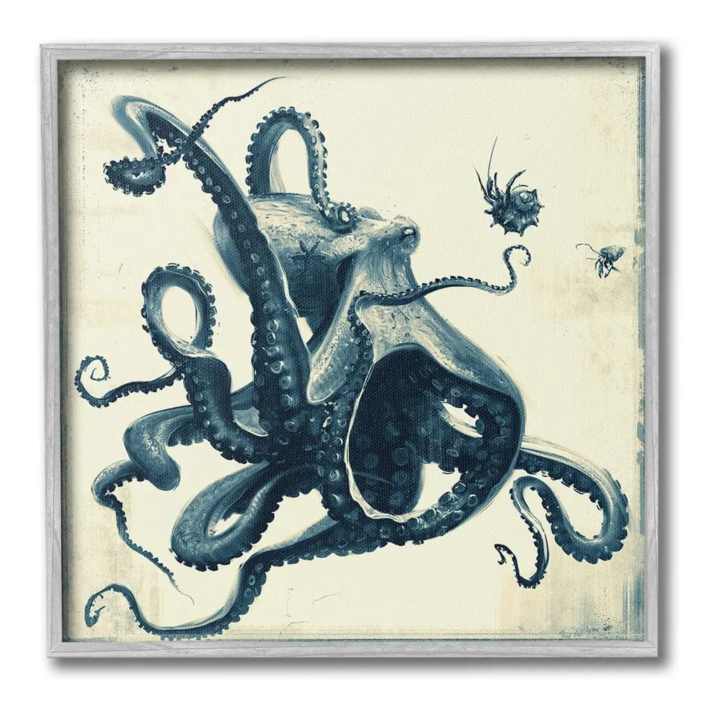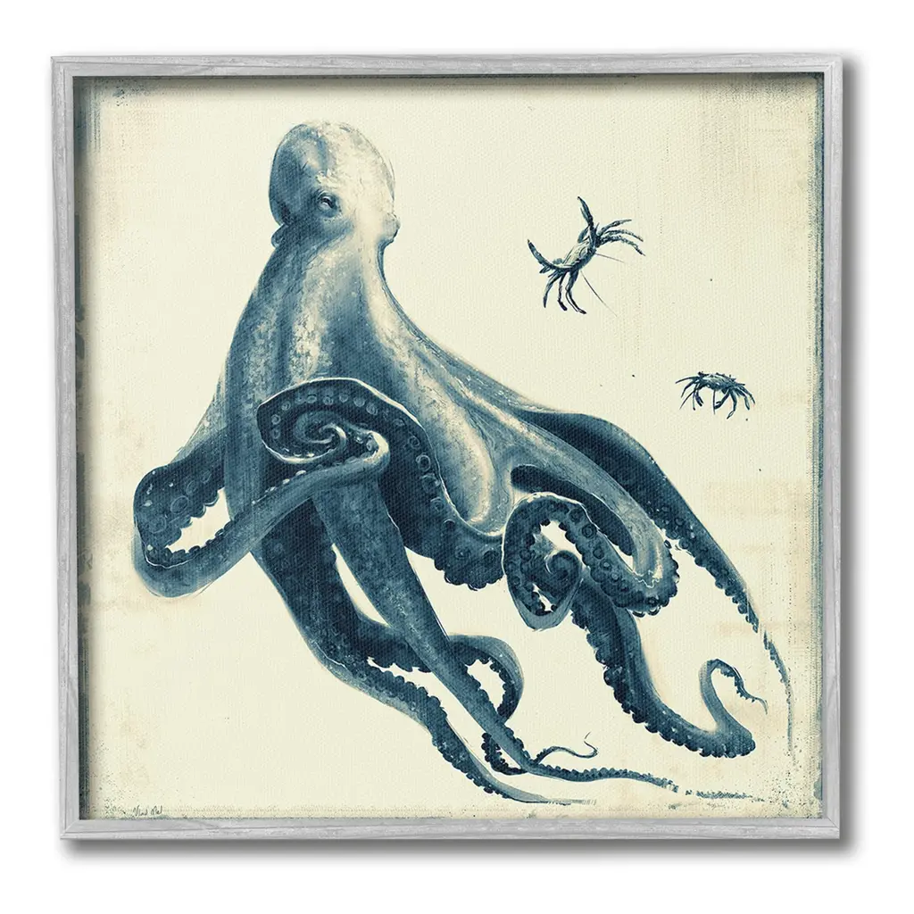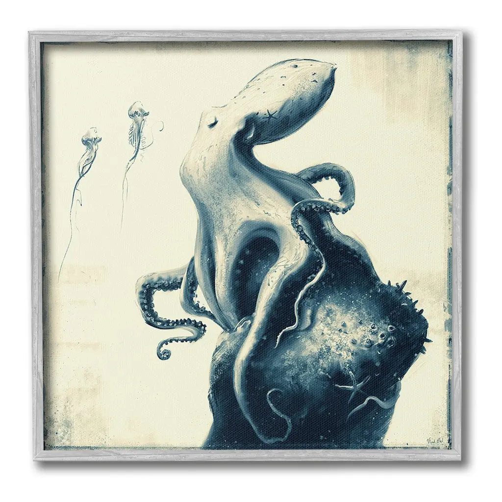 Add dimension to any room with our textured Framed Giclee Artwork. Our framed artwork is securely mounted into a 1.5-inch thick wood grain frame and ready to hang. Frames are available in three alluring styles: black, gray farmhouse and white. In addition, you should check out our oversized options if you want a statement piece. Stupell Wall Art is made in the USA.Features: Dimensions: 12 x 1.5 x 12 FramedFramed Giclee Product Sizes Include 12"x12", 17"x17", and 24"x24". Framed Giclee Products have a 1.5" Depth. Wall Art is Ready to Hang with Hardware Free Hanging. No installation required. For Easy Set Up Lean or Layer Artwork on Shelf or Against Wall.Our giclée prints are carefully mounted on a durable MDF backing, and then perfectly finished in a 1.5 inch thick woodgrain frame. Mounted frame colors include black, gray farmhouse and white. Made In USA.Artwork Relates To: Animal, Sea Life, Invertebrate, Octopus, Marine, Ocean, Nautical, BeachDesign by Vlad Mel