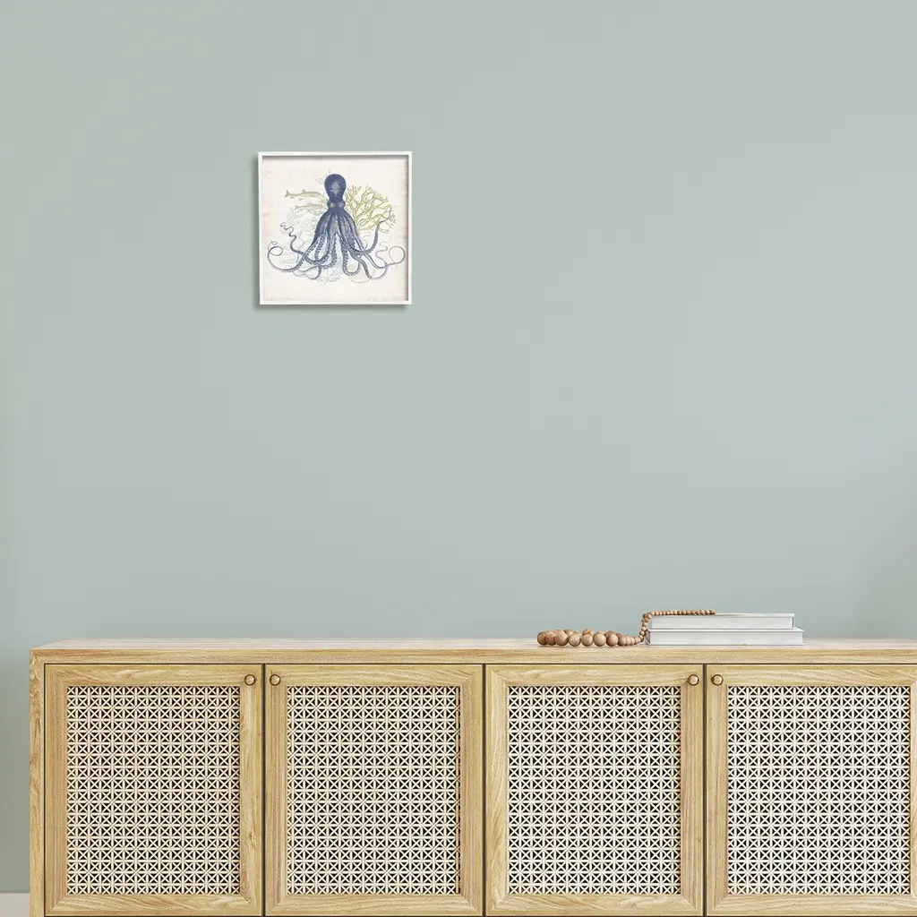 Our Framed Giclee Wall Art adds a touch of class to any space in your home or office. Frames are available in three alluring styles: black, gray farmhouse and white. Our textured artwork will add more depth and dimension to any space. Each piece is mounted with a 1.5 inch thick wood grain frame that is ready to hang! Looking for a statement piece? We have oversized artwork available.Features: Wall Art is Ready to Hang - No Installation or Hardware Needed. For Easy Set Up Lean or Layer Artwork on Shelf or Against Wall.Our giclee prints are carefully mounted on a durable MDF backing, and then perfectly finished in a 1.5 inch thick woodgrain frame. Mounted frame colors include black, gray farmhouse and white. Made In USA.Artwork Relates To: Drawing; Pattern, Sea Life, Octopus, FishDesign by Victoria Barnes
