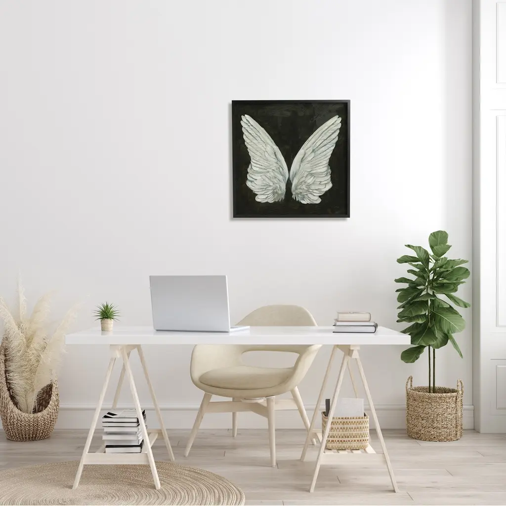 Stupell Off-White Angel Wings White Feathers Over Black Framed Wall Art - Grey - 24 X 24 - Black