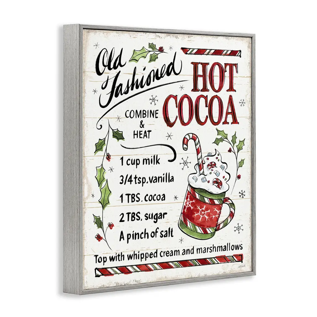 Stupell Old Fashioned Hot Cocoa Holiday Cooking Instructions Framed Wall Art - Red - 11 X 14 - Grey