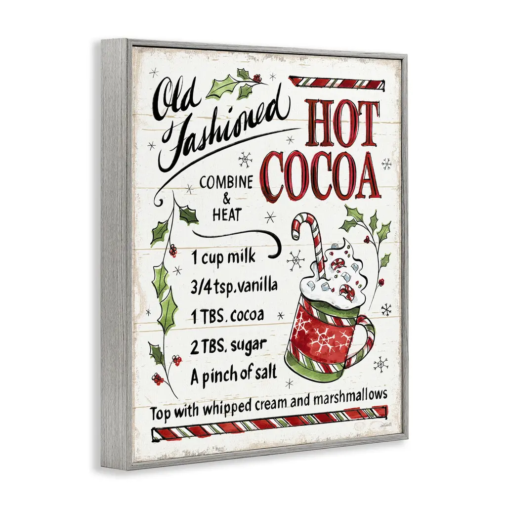Stupell Old Fashioned Hot Cocoa Holiday Cooking Instructions Framed Wall Art - Red - 16 X 20 - Grey