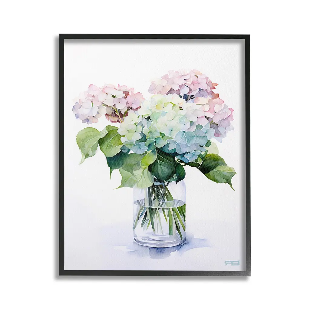 Add dimension to any room with our textured Framed Giclee Artwork. Our framed artwork is securely mounted into a 1.5-inch thick wood grain frame and ready to hang. Frames are available in three alluring styles: black, gray farmhouse and white. In addition, you should check out our oversized options if you want a statement piece. Stupell Wall Art is made in the USA.Features: Dimensions: 11 x 1.5 x 14 FramedFramed Giclee Products are available in the sizes 11"x14", 16"x20" or 24"x30". All Framed Giclee Products have a 1.5" Depth. Wall Art is Ready to Hang with Hardware Free Hanging. No installation required. For Easy Set Up Lean or Layer Artwork on Shelf or Against Wall.Our giclée prints are carefully mounted on a durable MDF backing, and then perfectly finished in a 1.5 inch thick woodgrain frame. Mounted frame colors include black, gray farmhouse and white. Made In USA.Artwork Relates To: Flower, Plant, Bouquet, Vase, Floral, Minimal, Cottage, Country, HydrangeaDesign by RB