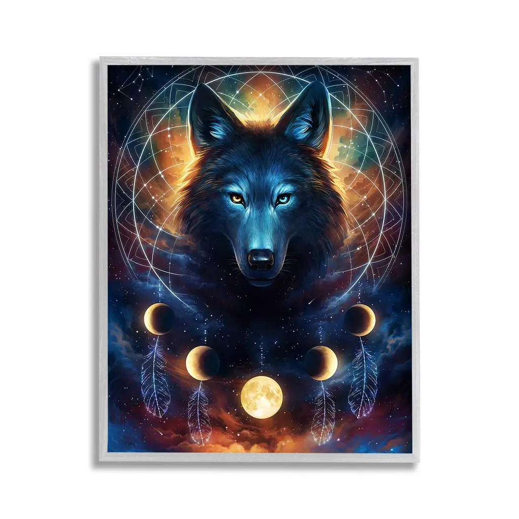 Our wall plaques start as high-quality lithograph prints mounted on durable 0.5-inch thick MDF wood. Each piece is hand finished and comes with a fresh layer of white foil on the sides to give it a crisp, clean look. Plaques arrive ready to hang without installation and come with removable plastic corners to keep them from damage in transit. Stupell Wall Art is made in the USA.Features: Dimensions: 10 x 0.5 x 15 InchesWall Plaque Product Sizes Include 10"x15" and 13"x19". All wall plaque products have a 0.5" Depth. Wall Art is Ready to Hang with Hardware Free Hanging. No installation required. For Easy Set Up Lean or Layer Artwork on Shelf or Against Wall.All of our wall plaques start off as high quality lithograph prints that are then mounted on durable 0.5 inch thick MDF wood. Each piece is hand finished and comes with a fresh layer of foil on the sides to give it a crisp clean look. Made In USA.Artwork Relates To: Nature, Night, Animal, Mammal, Wolf, Canine, Dog, Astronomy, Moon, Astral, Celestial, Feather, Pattern, Geometric, Lunar, CloudsDesign by Jonas Jodicke