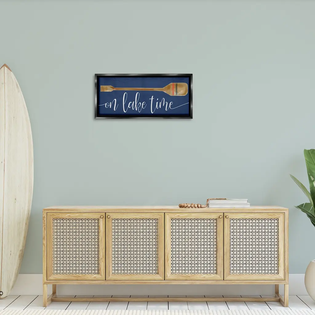 Elevate your home or office to the next level with Stupell Framed Floating Canvas Wall Art. Our premium hand-stretched canvas is mounted securely into a sturdy lightweight frame. The museum-style gap between the wrapped canvas and the box frame gives the illusion of floating artwork. Stupell Wall Art is made in the USA.Features: Dimensions: 25 x 1.7 x 11 Frame, 24 x 1.5 x 10 Canvas ArtFloating Frame Canvas Products are available in sizes 25"x11" and 31"x14". All Floating Frame Canvas Products have a 1.7" Depth.Wall Art is Ready to Hang with Hardware Free Hanging. No Installation required. For Easy Set Up Lean or Layer Artwork on Shelf or Against Wall. Artwork is Permently Fixed into the Frame.Our elevated 1.7" Thick Floating Frame is the perfect complement to our canvas style Wall Art. We use only the highest quality inks in house with industry leading printing solutions. Canvas is hand stretched over a durable wood foundation and then mounted securly into a Modern Box Frame. Made in the USA.Artwork Relates To: Lake House, Oar, Boat, Lake, Rustic, Paddle, Nautical, SummerDesign by Daphne Polselli