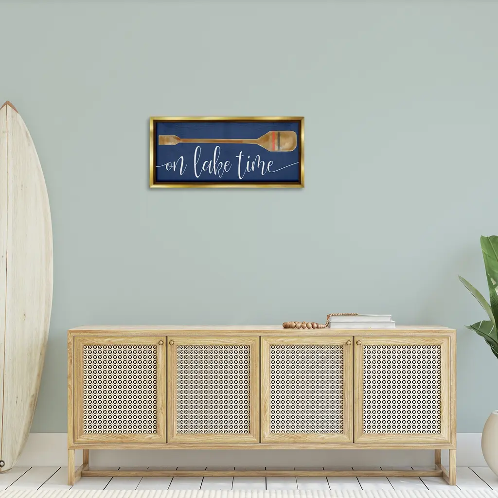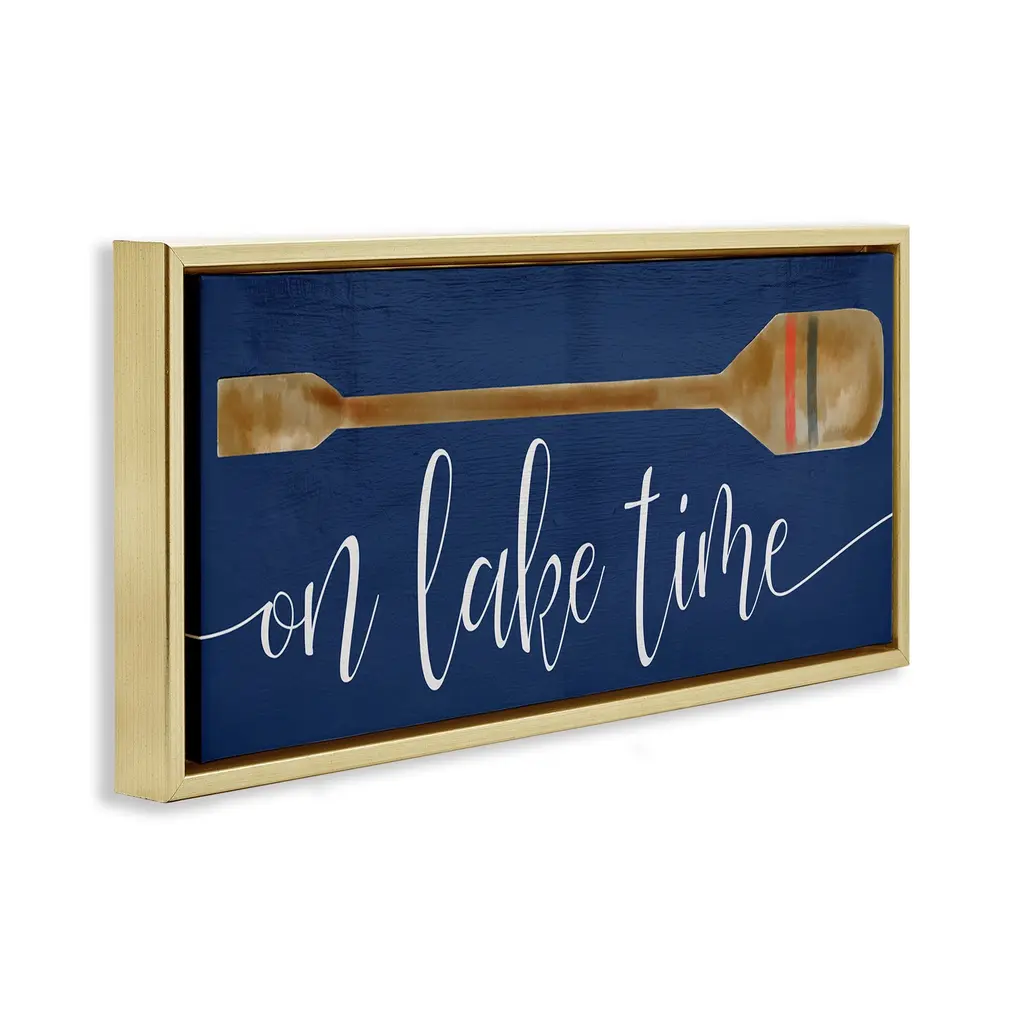 Stupell On Lake Time With Oar Framed Floater Canvas Wall Art Design By Daphne Polselli - 31 X 14 - Gold