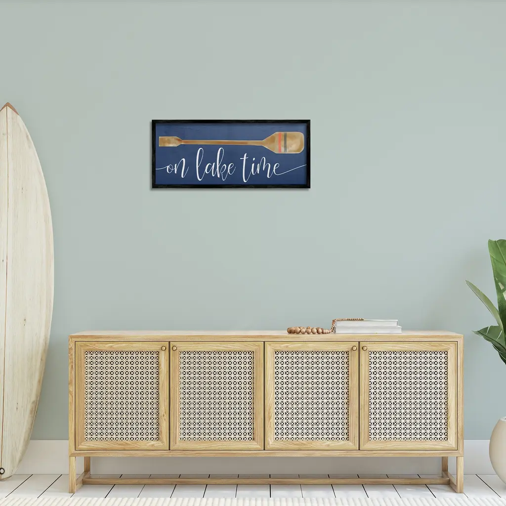 Stupell On Lake Time With Oar Framed Giclee Art Design By Daphne Polselli - 30 X 13 - Black