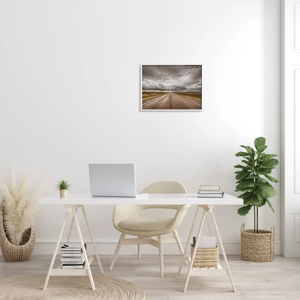 Stupell Open Road Under Stormy Sky Western Landscape Framed Wall Art - Multi-Color - 16 X 20 - White