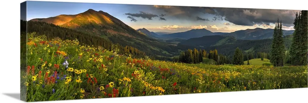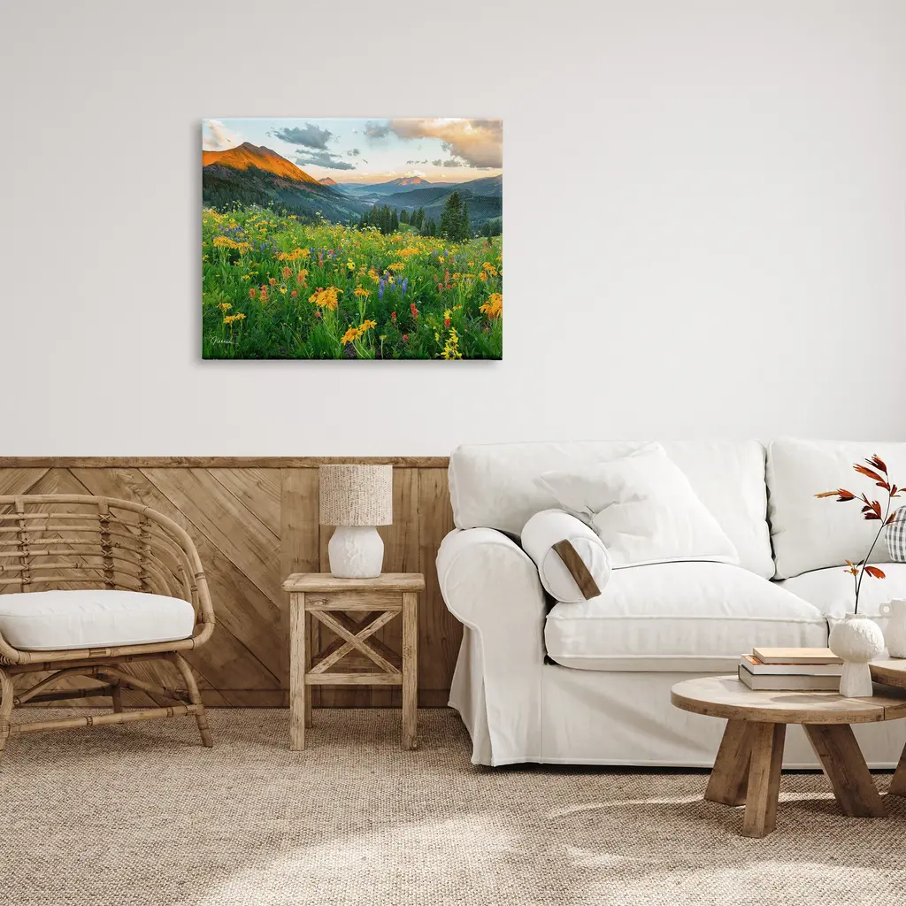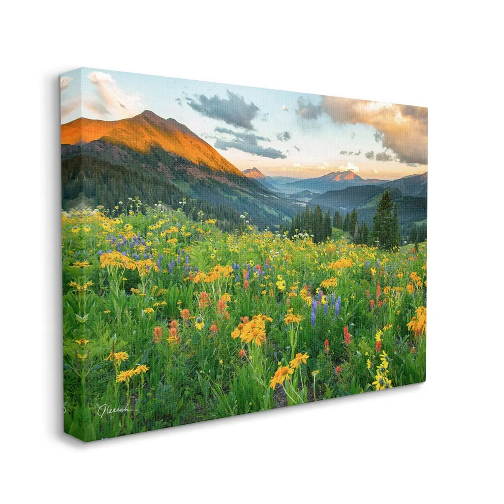 Stupell Open Wildflower Fields Cloudy Sunrise Mountain Landscape Canvas Wall Art - Multi-Color - 40 X 30