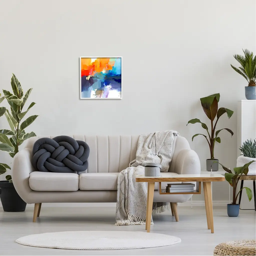 Stupell Orange & Blue Abstraction Framed Giclee Art Design By Lisa Ridgers - 17 X 17 - White