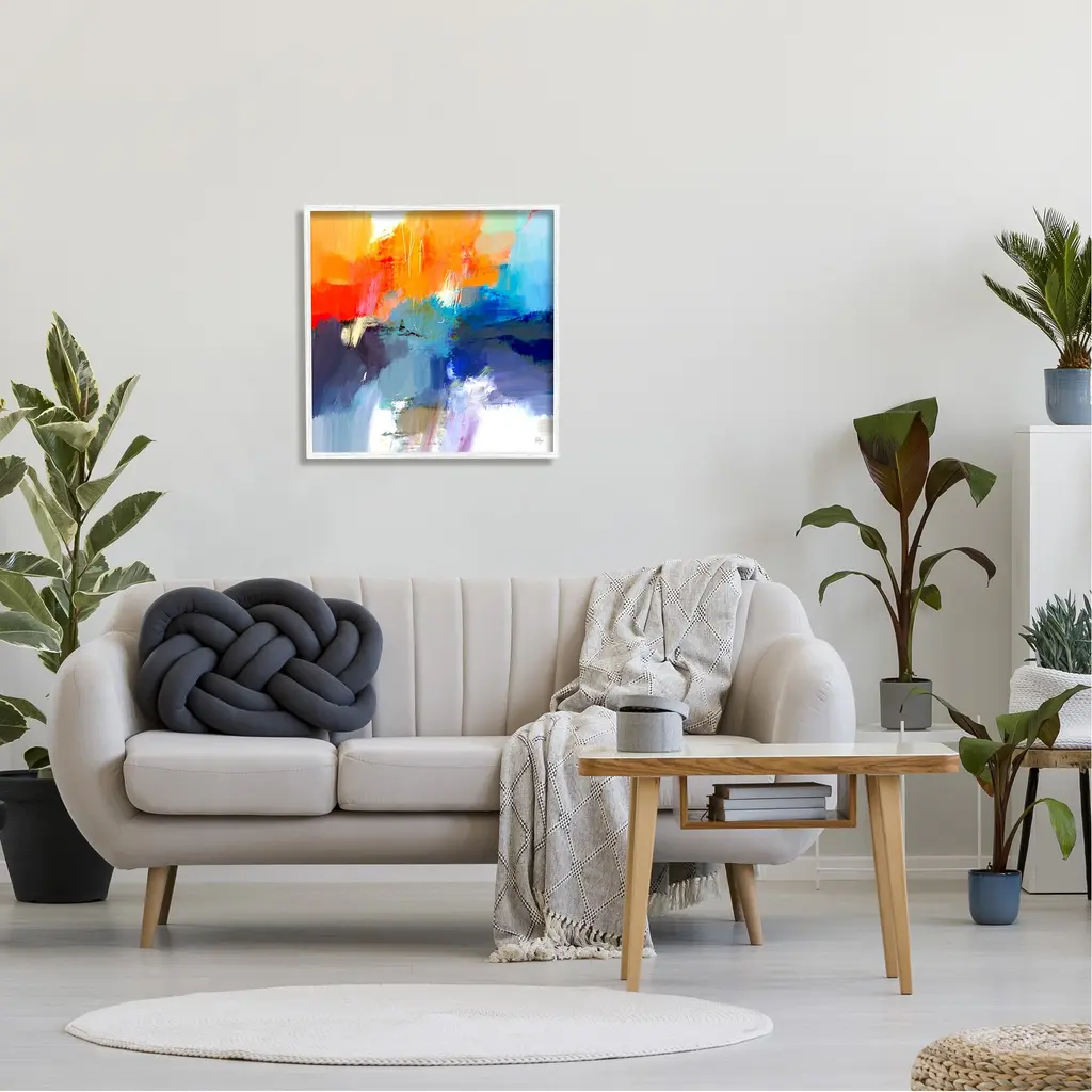 Stupell Orange & Blue Abstraction Framed Giclee Art Design By Lisa Ridgers - 24 X 24 - White