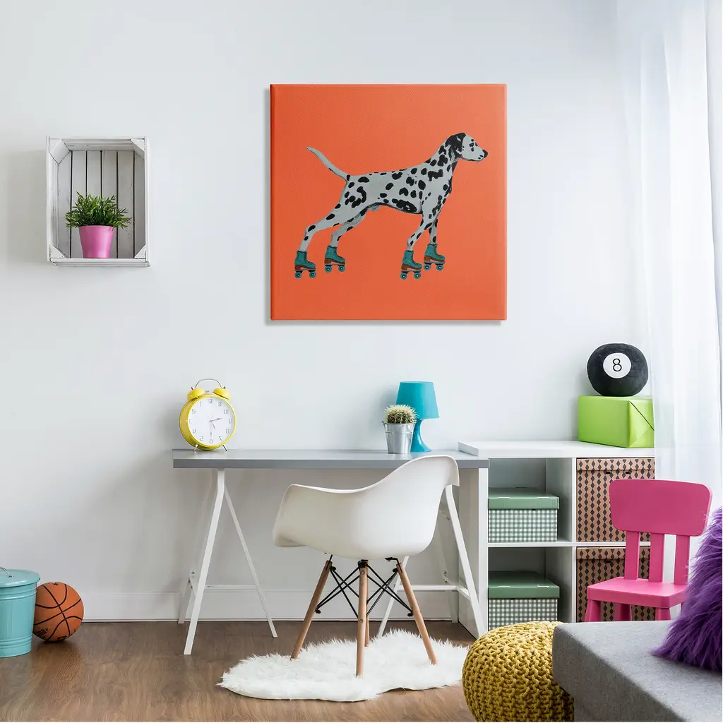 We create our stretched canvas to the highest standards. Using only the highest quality inks and canvas on Mimaki printers, we hand-cut and stretch each piece over a 1.5-inch thick wooden frame for hanging. As a result, the art comes ready to hang on the sturdy ledge with no installation required. Stupell Wall Art is made in the USA.Features: Dimensions: 17 x 1.5 x 17 InchesStretched Canvas Sizes Include Standard: 17 x 1.5 x 17 Large: 24 x 1.5 x 24 X-Large: 30 x 1.5 x 30 Oversized: 36 x 1.5 x 36Wall Art is Ready to Hang - No Installation or Hardware Needed. For Easy Set Up Lean or Layer Artwork on Shelf or Against Wall.Our stretched canvas is created with the highest standards. We use only the highest quality inks and canvas on our in house Mimaki printers, and then hand cut and stretch each piece over a 1.5 inch thick wooden frame for hanging. Made In USA.Artwork Relates To: Animal, Canine, Dog, Hound, Mammal, Pet, Dalmatian, Skating, RollerskatingDesign by Coco de Paris