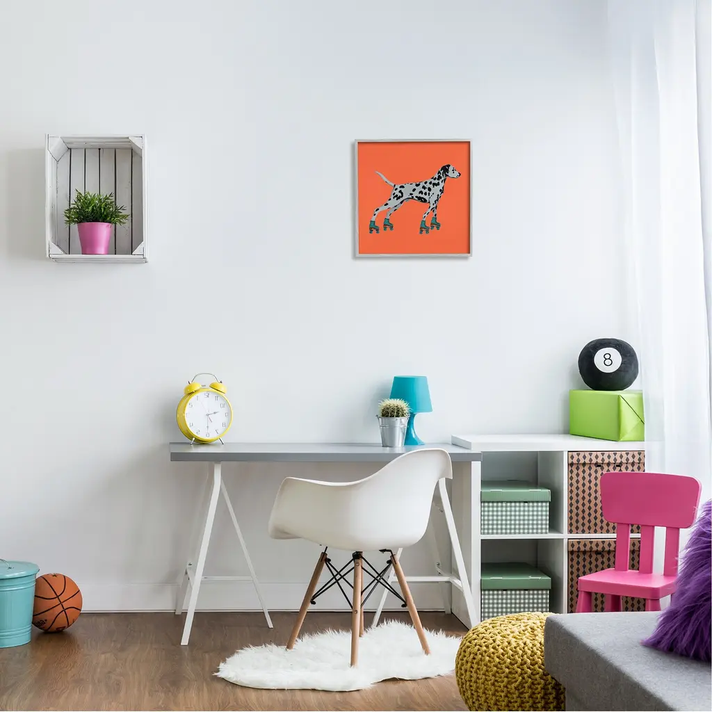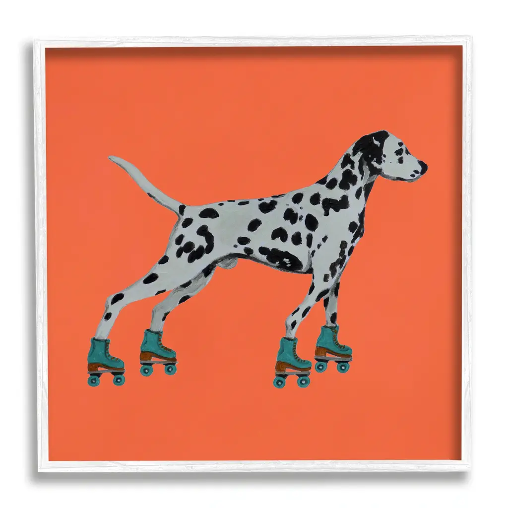 Add dimension to any room with our textured Framed Giclee Artwork. Our framed artwork is securely mounted into a 1.5-inch thick wood grain frame and ready to hang. Frames are available in three alluring styles: black, gray farmhouse and white. In addition, you should check out our oversized options if you want a statement piece. Stupell Wall Art is made in the USA.Features: Dimensions: 12 x 1.5 x 12 FramedFramed Giclee Sizes Include Standard: 12 x 1.5 x 12 Large: 17 x 1.5 x 17 Oversized: 24 x 1.5 x 24Wall Art is Ready to Hang - No Installation or Hardware Needed. For Easy Set Up Lean or Layer Artwork on Shelf or Against Wall.Our giclée prints are carefully mounted on a durable MDF backing, and then perfectly finished in a 1.5 inch thick woodgrain frame. Mounted frame colors include black, gray farmhouse and white. Made In USA.Artwork Relates To: Animal, Canine, Dog, Hound, Mammal, Pet, Dalmatian, Skating, RollerskatingDesign by Coco de Paris