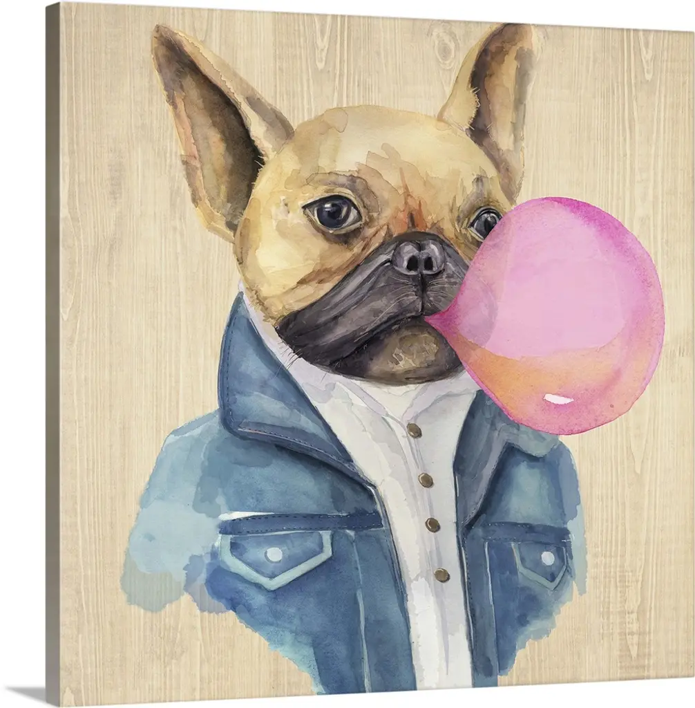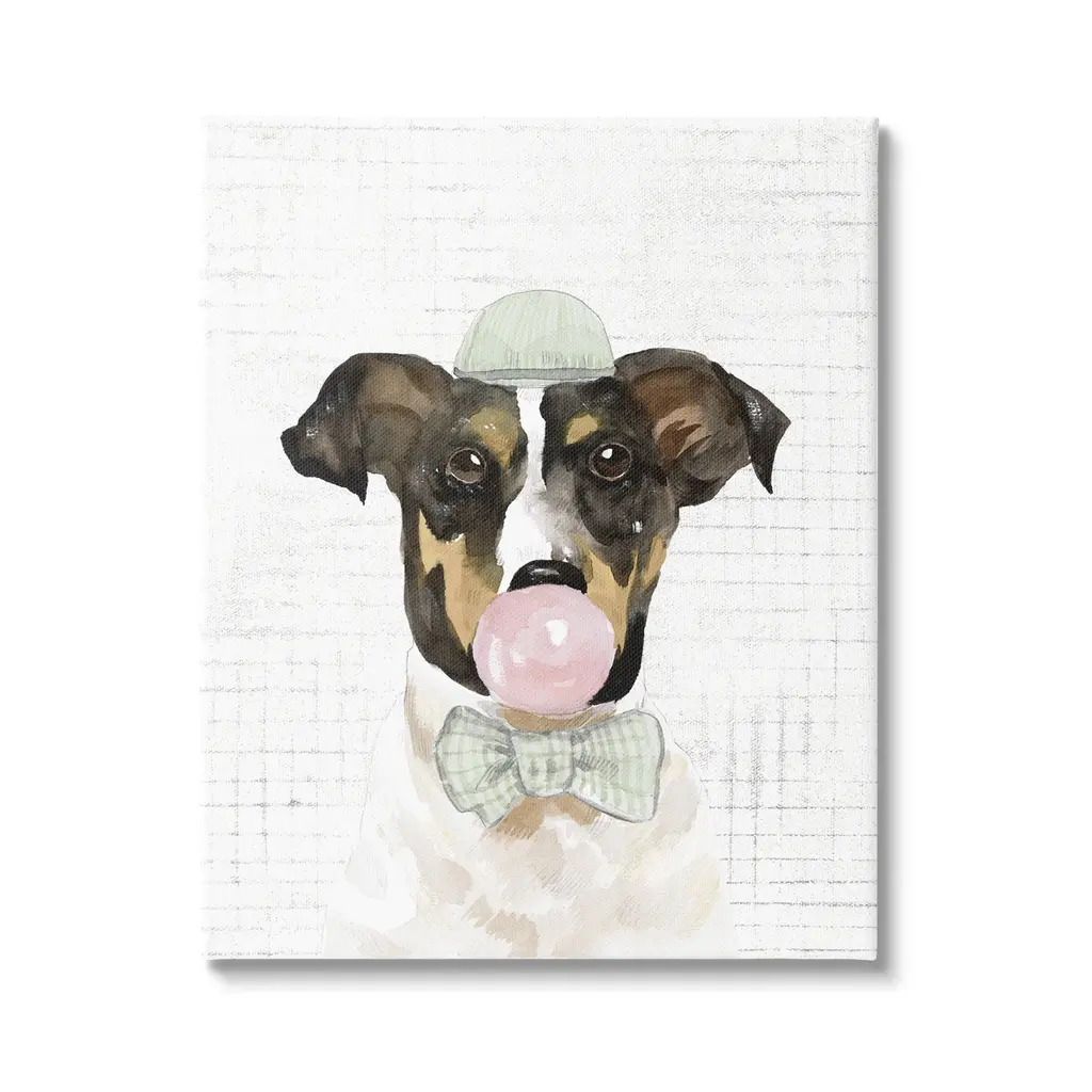 We create our stretched canvas to the highest standards. Using only the highest quality inks and canvas on Mimaki printers, we hand-cut and stretch each piece over a 1.5-inch thick wooden frame for hanging. As a result, the art comes ready to hang on the sturdy ledge with no installation required. Stupell Wall Art is made in the USA.Features: Dimensions: 16 x 1.5 x 20 InchesStretched Canvas Sizes Include Standard: 16 x 1.5 x 20 Large: 20 x 1.5 x 30 X-Large: 30 x 1.5 x 40 Oversized: 36 x 1.5 x 48Wall Art is Ready to Hang with Hardware Free Hanging. No installation required. For Easy Set Up Lean or Layer Artwork on Shelf or Against Wall.Our stretched canvas is created with the highest standards. We use only the highest quality inks and canvas on our in house Mimaki printers, and then hand cut and stretch each piece over a 1.5 inch thick wooden frame for hanging. Made In USA.Artwork Relates To: Animal, Canine, Mammal, Pet, Painting, Dog, Glasses, BubblegumDesign by Rachel Nieman