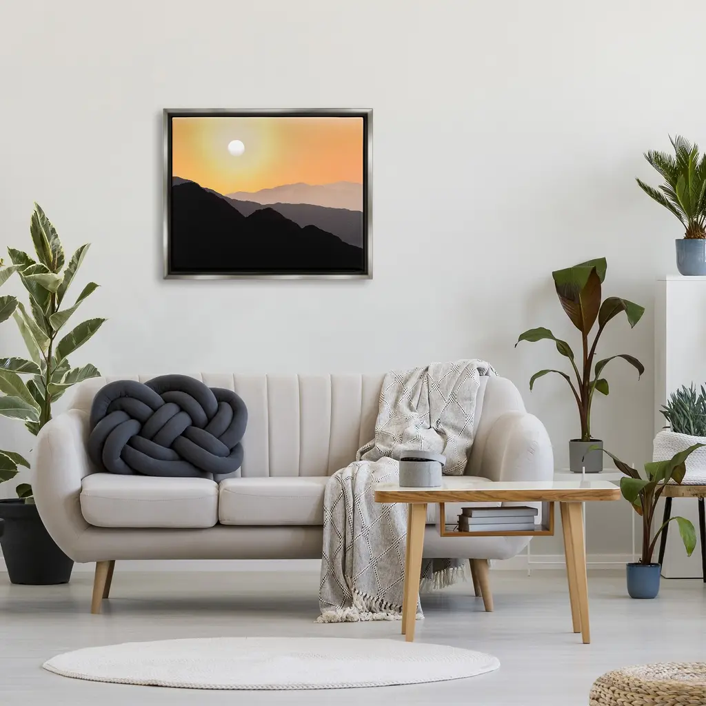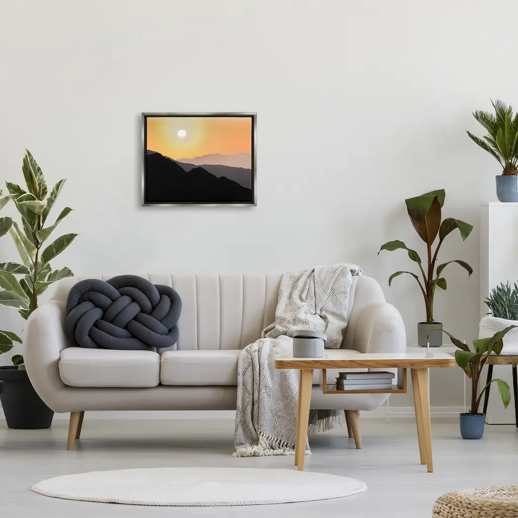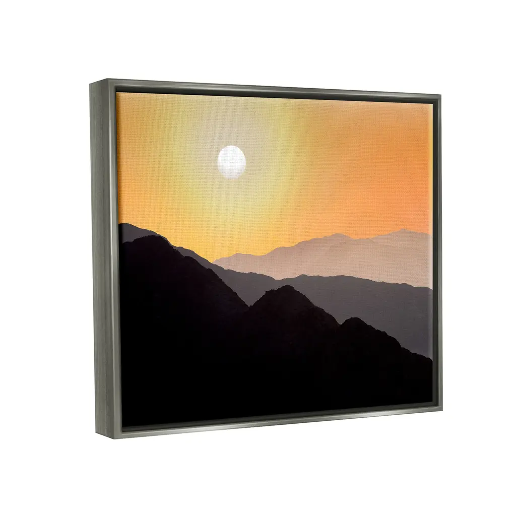Stupell Orange Sky Mountain Silhouettes Framed Floater Canvas Wall Art By Dennis Frates - 30 X 24 - Grey