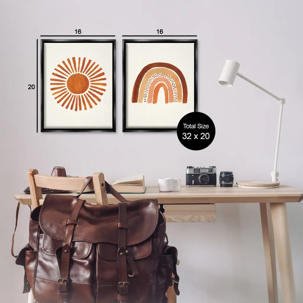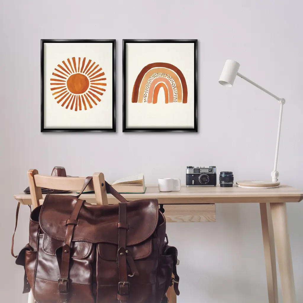 Elevate your home or office to the next level with Stupell Framed Floating Canvas Wall Art. Our premium hand-stretched canvas is mounted securely into a sturdy lightweight frame. The museum-style gap between the wrapped canvas and the box frame gives the illusion of floating artwork. Stupell Wall Art is made in the USA.Features: Dimensions: 2 Piece Set, Each Frame is 17 x 1.7 x 21Two Piece Floater Framed Canvas are available as 17x21 or 25x31 Panels. All Floater Frame Products have a 1.7" Depth.Wall Art is Ready to Hang with Hardware Free Hanging. No Installation required. For Easy Set Up Lean or Layer Artwork on Shelf or Against Wall. Artwork is Permently Fixed into the Frame.Our elevated 1.7" Thick Floating Frame is the perfect complement to our canvas style Wall Art. We use only the highest quality inks in house with industry leading printing solutions. Canvas is hand stretched over a durable wood foundation and then mounted securly into a Modern Box Frame. Made in the USA.Artwork Relates To: Boho, Rainbow, Sun, Nature, NeutralDesign by Heather McLaughlin