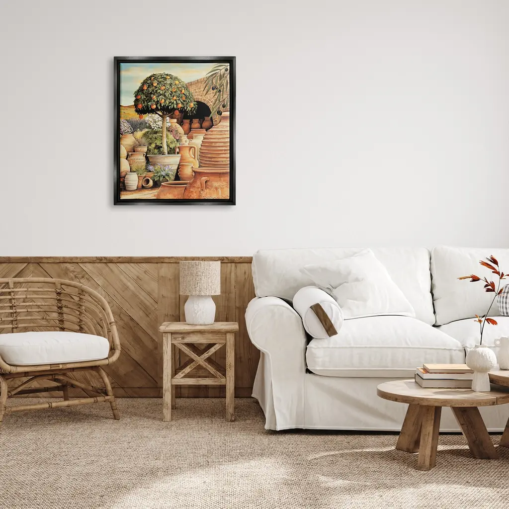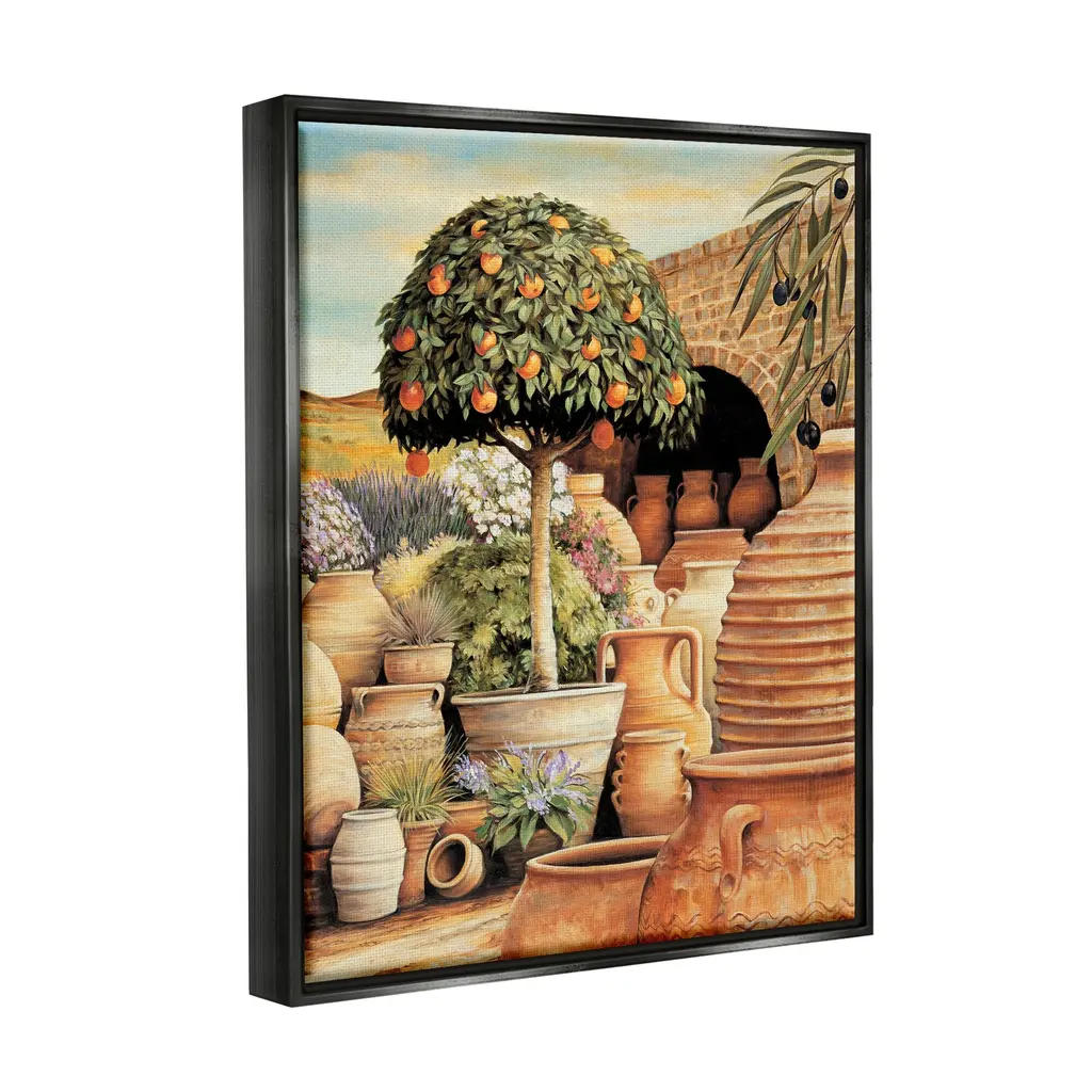 Stupell Orange Tree & Pottery Scene Framed Floater Canvas Wall Art Design By Eduardo - 25 X 31 - Black