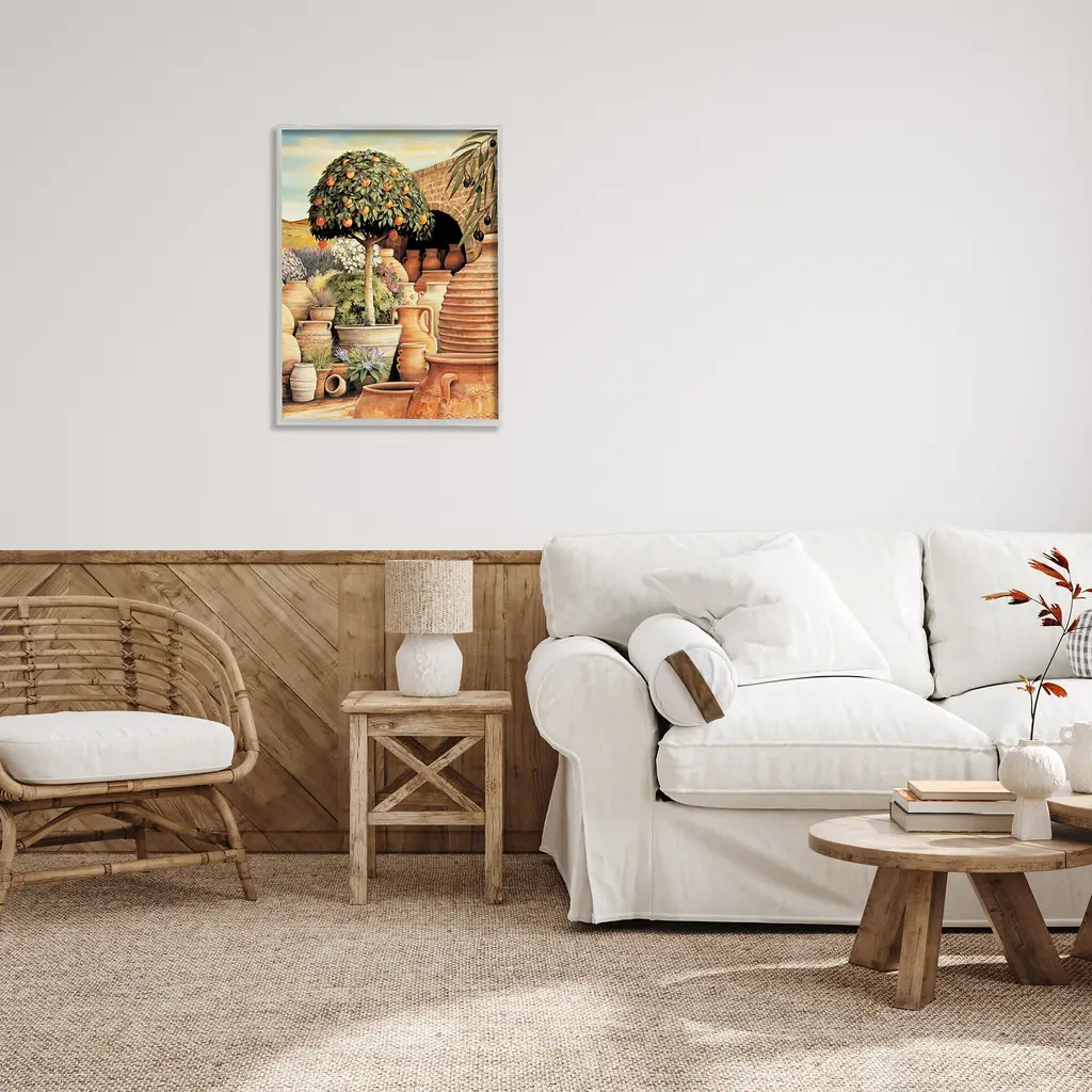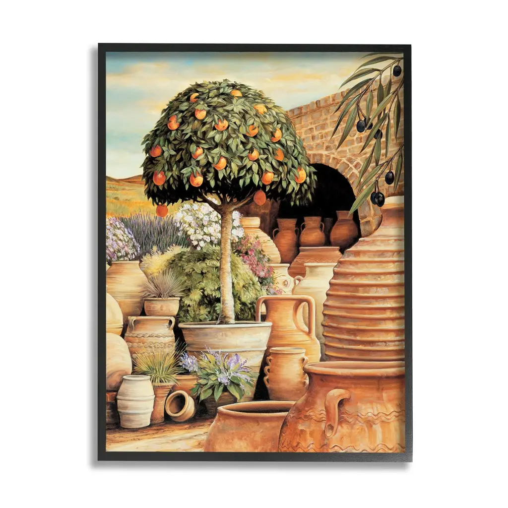 Stupell Orange Tree & Pottery Scene Framed Giclee Art Design By Eduardo - 24 X 30 - Grey