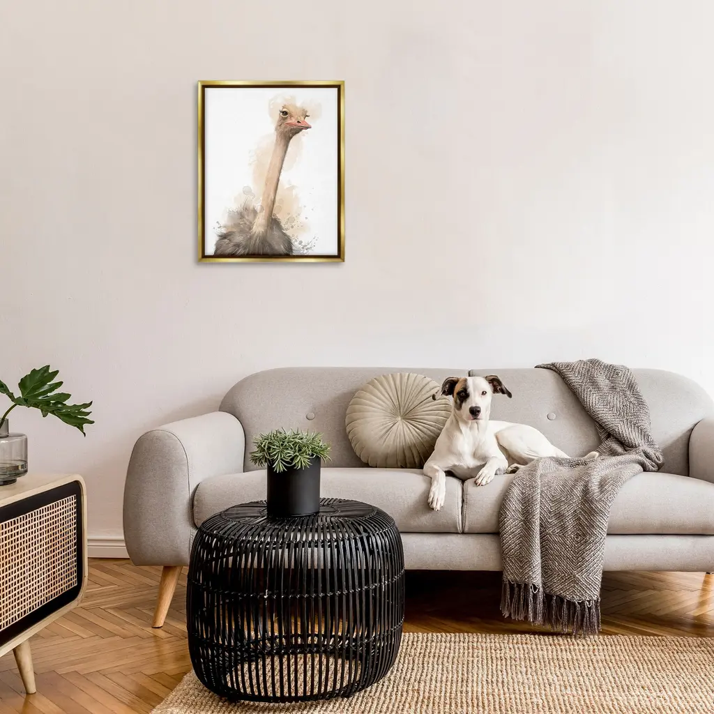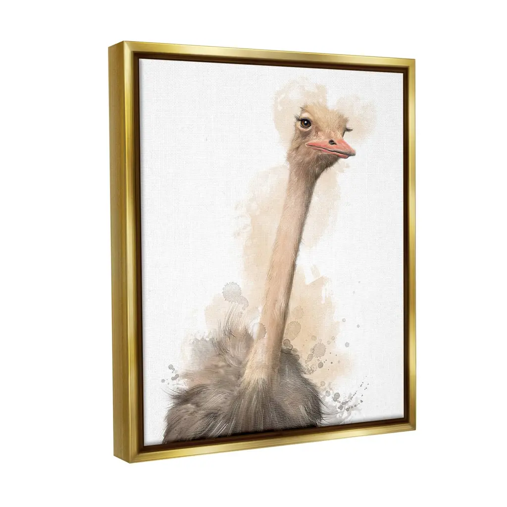 Elevate your home or office to the next level with Stupell Framed Floating Canvas Wall Art. Our premium hand-stretched canvas is mounted securely into a sturdy lightweight frame. The museum-style gap between the wrapped canvas and the box frame gives the illusion of floating artwork. Stupell Wall Art is made in the USA.Features: Dimensions: 17 x 1.7 x 21 Frame, 16 x 1.5 x 20 Canvas ArtFloating Frame Canvas Products are available in sizes 17"x21" and 25"x31". All Floating Frame Canvas Products have a 1.7" Depth.Wall Art is Ready to Hang with Hardware Free Hanging. No Installation required. For Easy Set Up Lean or Layer Artwork on Shelf or Against Wall. Artwork is Permently Fixed into the Frame.Our elevated 1.7" Thick Floating Frame is the perfect complement to our canvas style Wall Art. We use only the highest quality inks in house with industry leading printing solutions. Canvas is hand stretched over a durable wood foundation and then mounted securly into a Modern Box Frame. Made in the USA.Artwork Relates To: Animal, Bird, Ostrich, Beak, ModernDesign by Matthew Piotrowicz