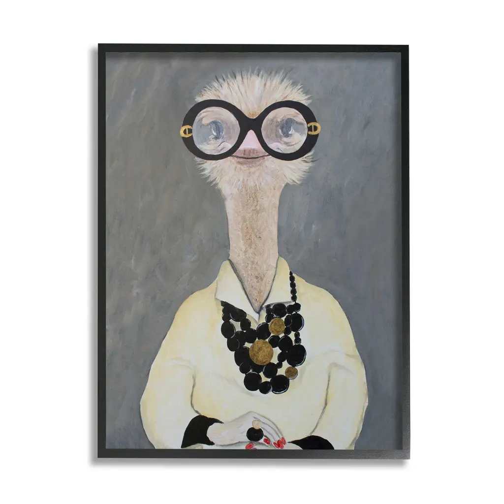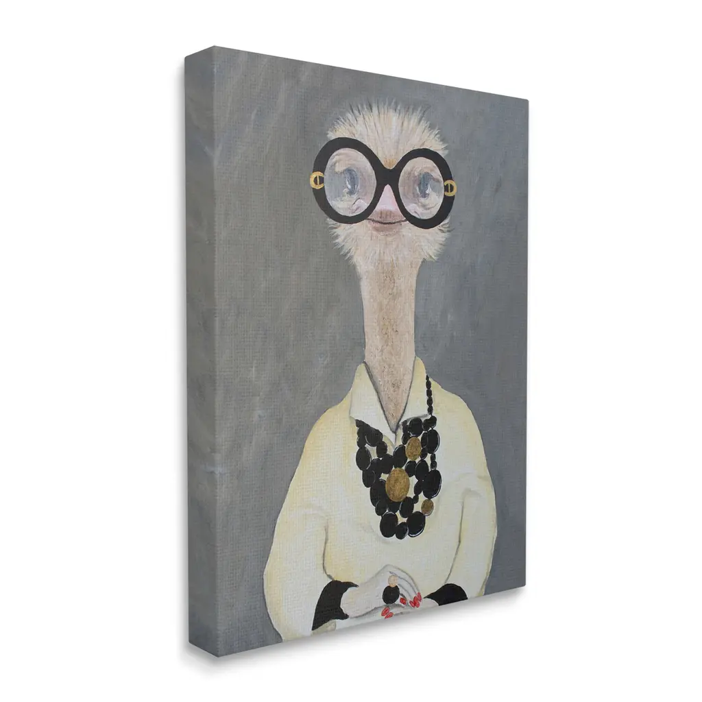 Stupell Ostrich Bird Wearing Glasses Jewelry Painted Nails Canvas Wall Art - 30 X 40